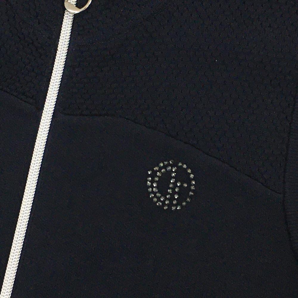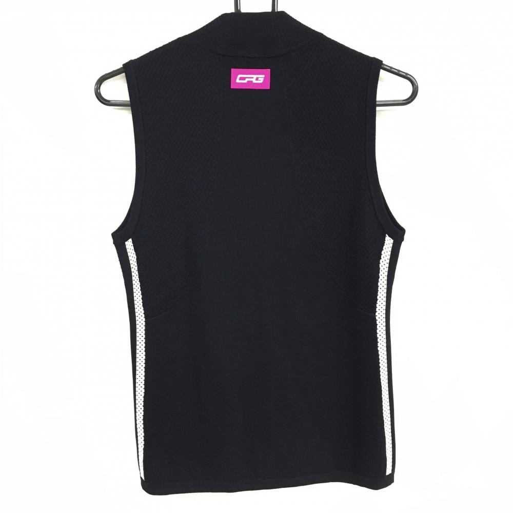 【超美品】シーピージー ニットジップベスト ネイビー× 白 サイドライン ロゴラインストーン レディース S ゴルフウェア CPG