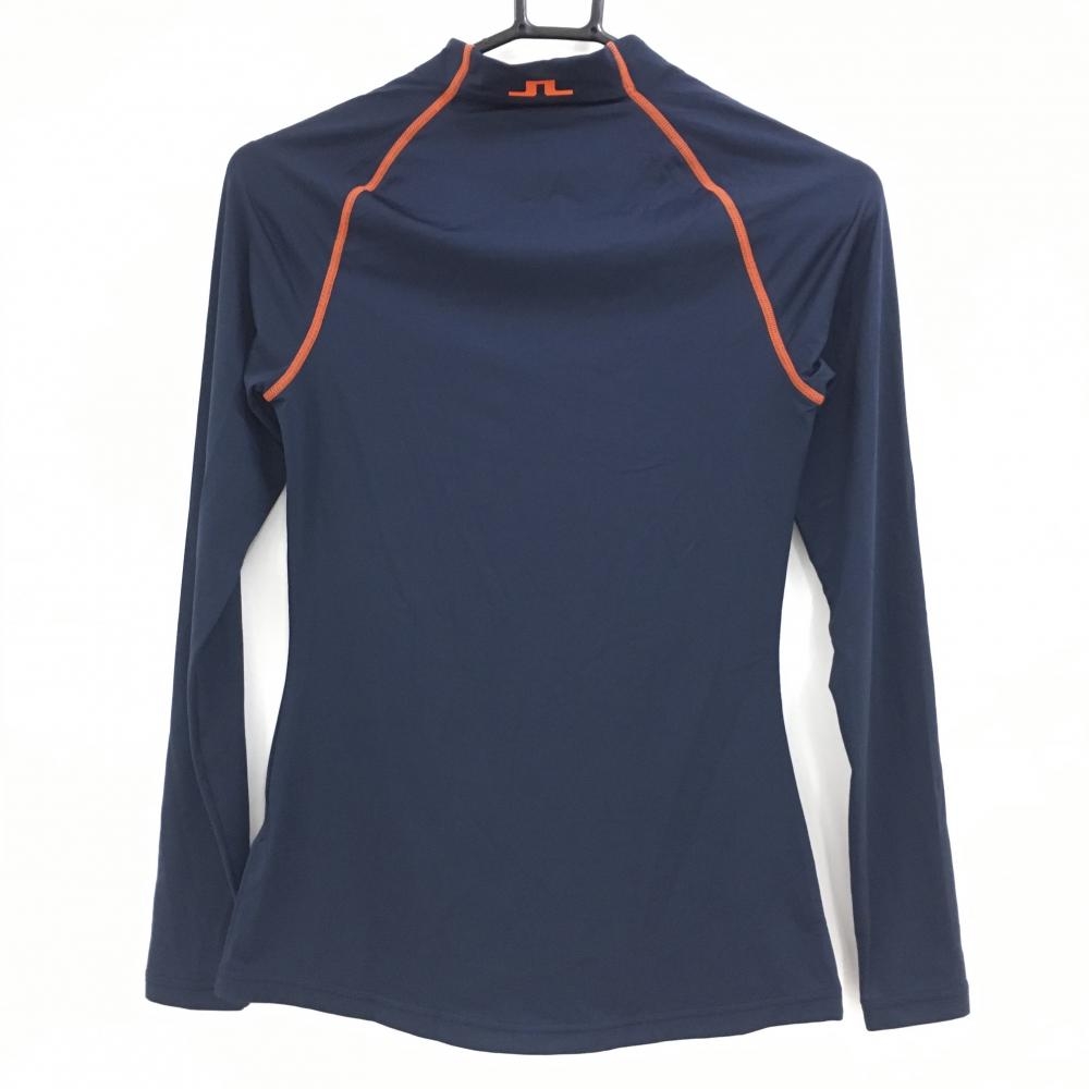 【美品】ジェイリンドバーグ ハイネックインナーシャツ ネイビー×オレンジ フロントロゴ レディース XS ゴルフウェア J.LINDEBERG