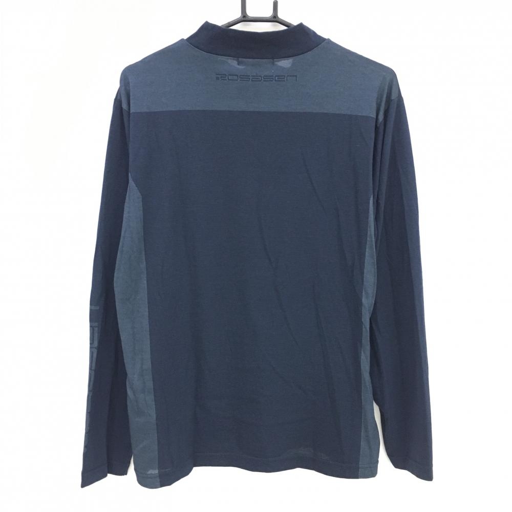 【美品】ロサーセン 長袖ハイネックシャツ ネイビー 細ボーダー サイド切替 メンズ LL ゴルフウェア Rosasen
