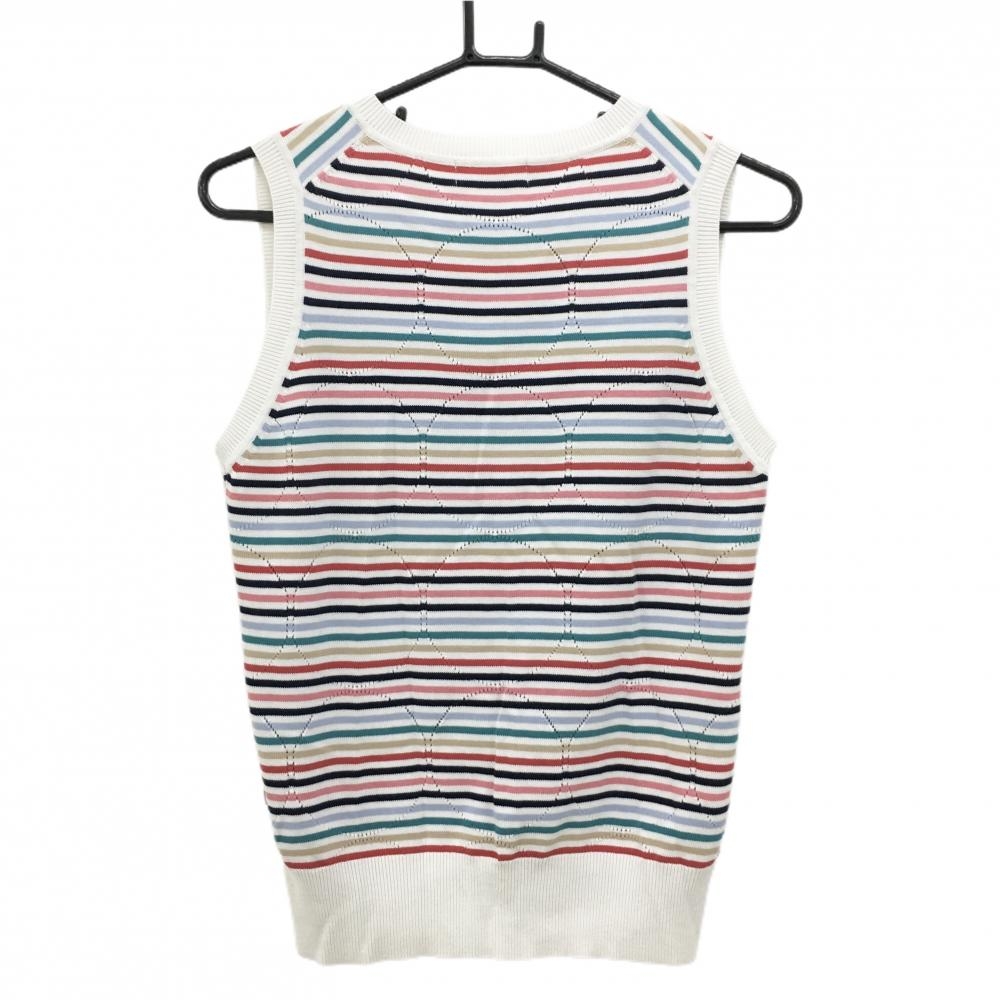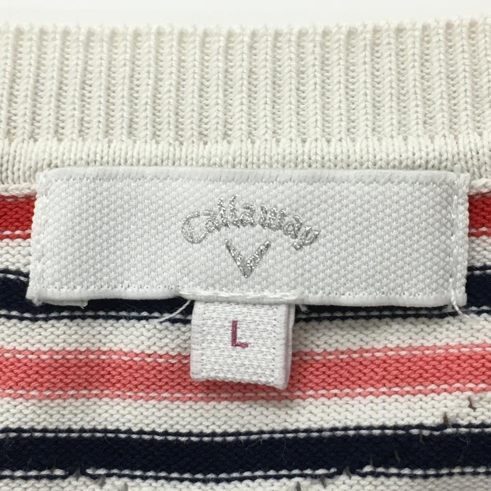 【美品】キャロウェイ ニットベスト マルチカラー ボーダー ドット透かし編み Vネック レディース L ゴルフウェア Callaway