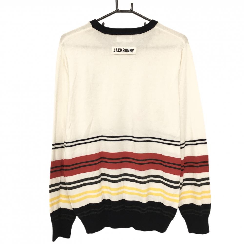 ジャックバニー セーター 白×レッド×ネイビー 一部ボーダー ニット メンズ 6 ゴルフウェア Jack Bunny
