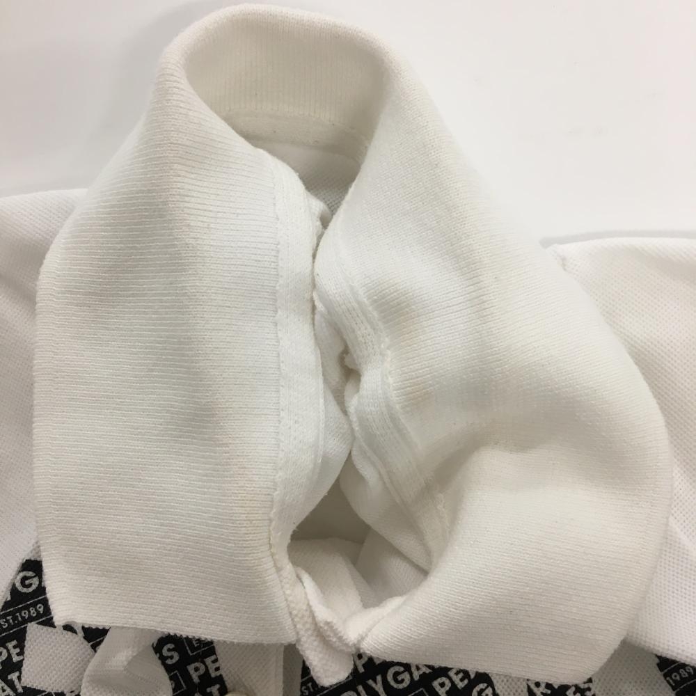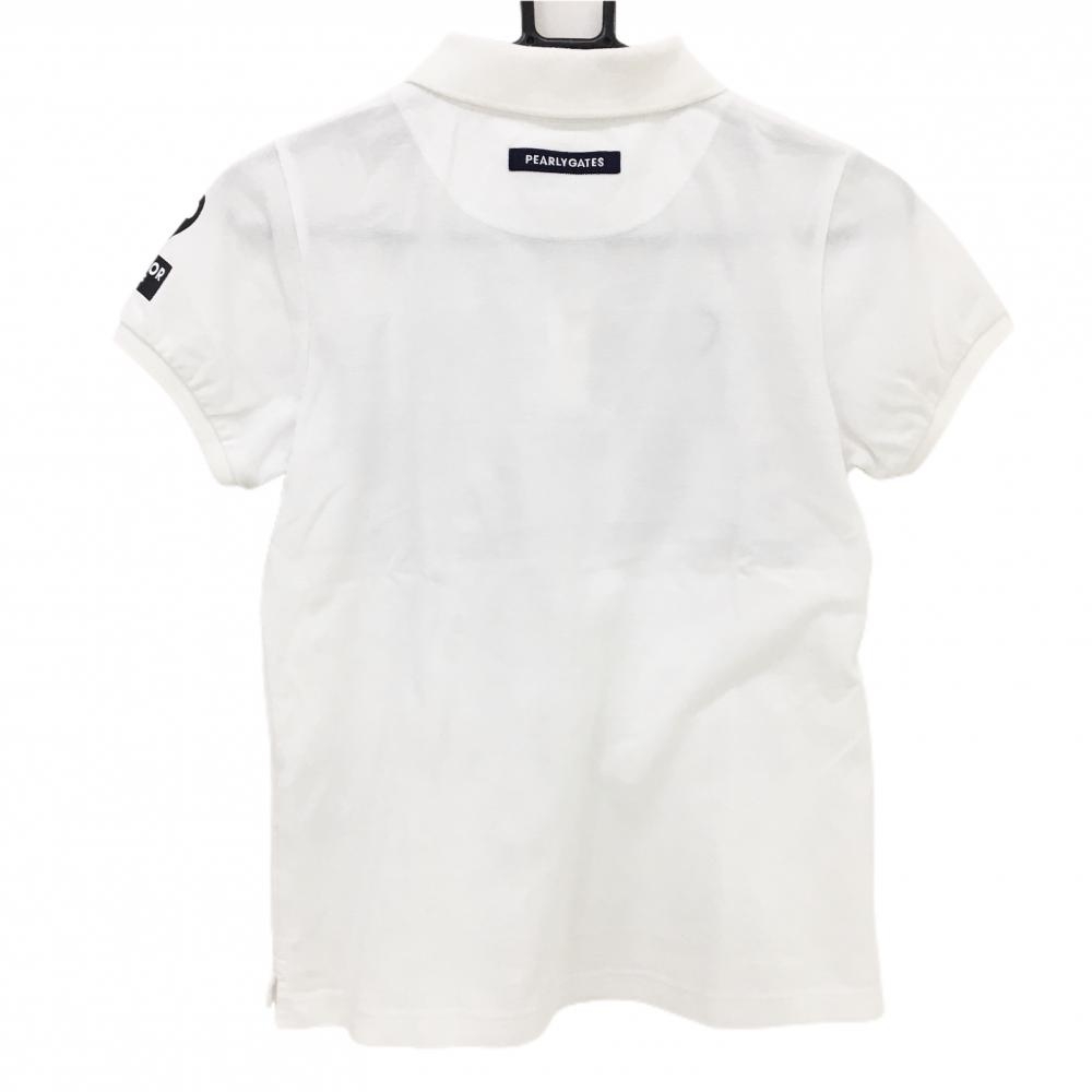 【美品】パーリーゲイツ 半袖ポロシャツ 白×ネイビー フロントロゴ レディース 0(S) ゴルフウェア PEARLY GATES