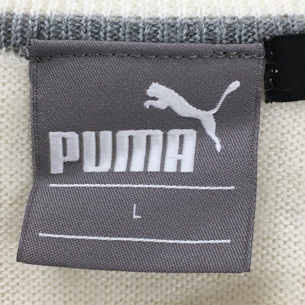 プーマ セーター 白 袖ケーブル編み ニット ウール混 Vネック メンズ L ゴルフウェア PUMA