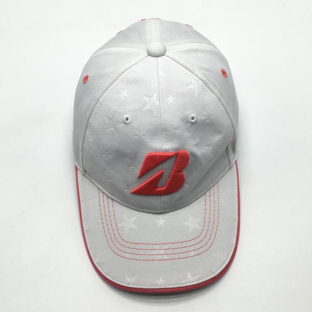【超美品】ブリヂストンゴルフ キャップ 白×ピンク 星柄地模様 レディース フリー(約55-58cm) ゴルフウェア Bridgestone