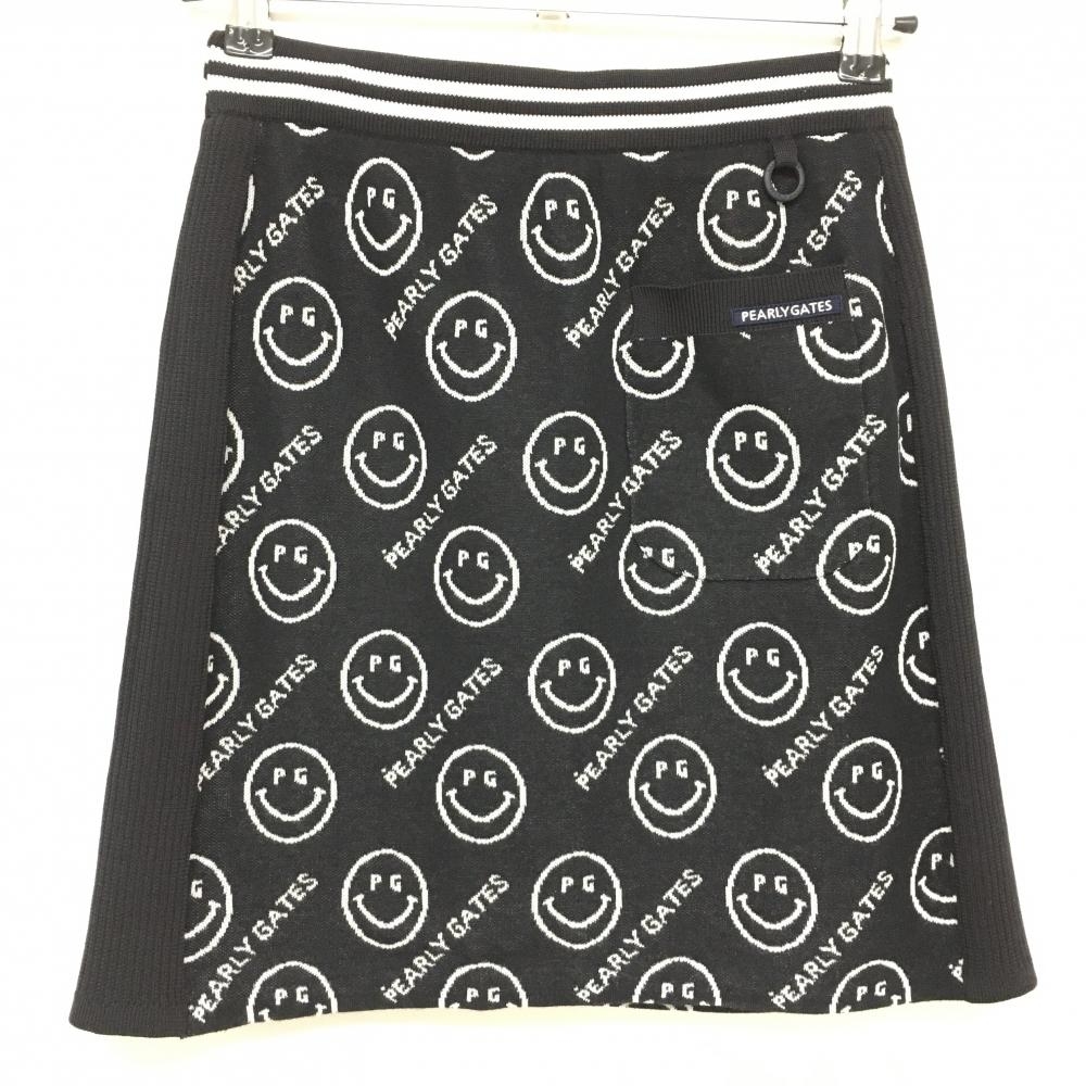 【超美品】パーリーゲイツ ニットスカート 黒×白 ニコちゃん総柄 スマイル ウエストゴム レディース 1(M) ゴルフウェア PEARLY GATES