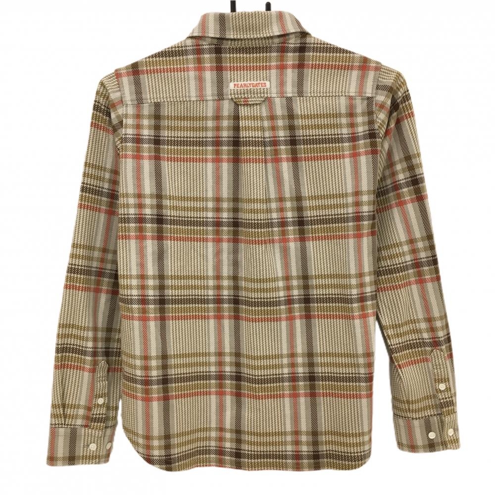 【超美品】パーリーゲイツ 長袖ポロシャツ ブラウン×オレンジレッド チェック レディース 0(S) ゴルフウェア PEARLY GATES