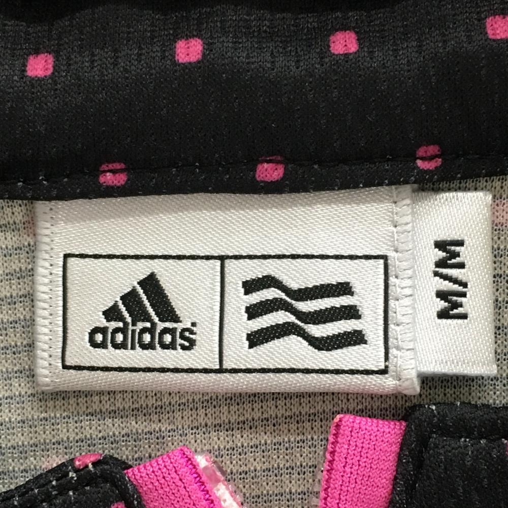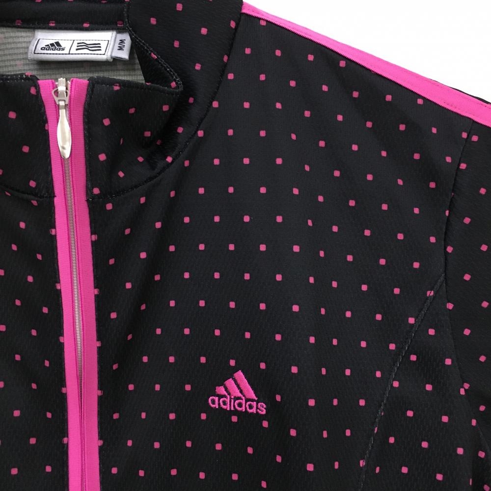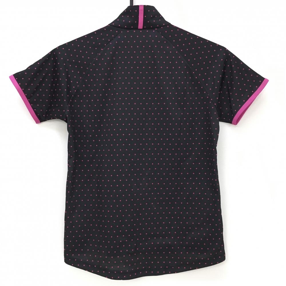 【美品】アディダス 半袖ハイネックシャツ 黒×ピンク ドット ハーフジップ レディース M/M ゴルフウェア adidas