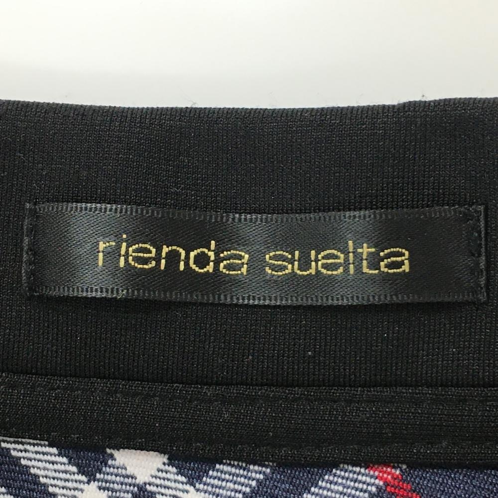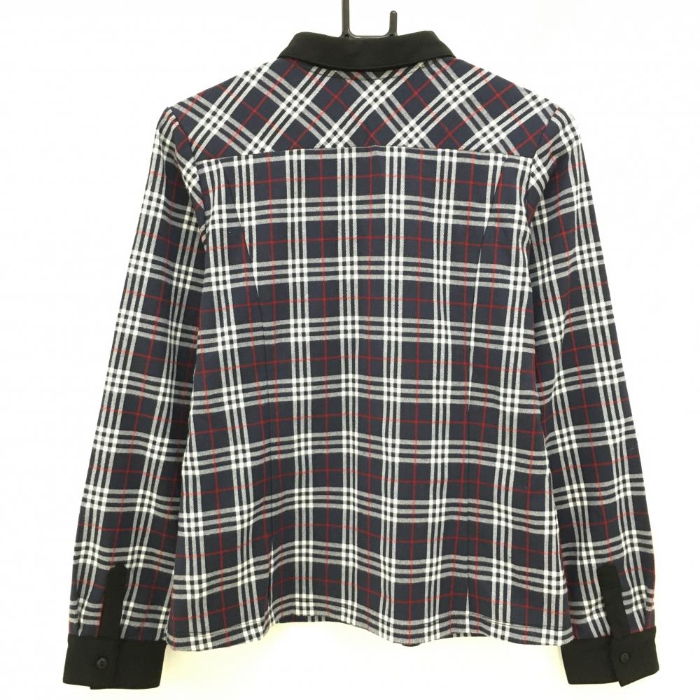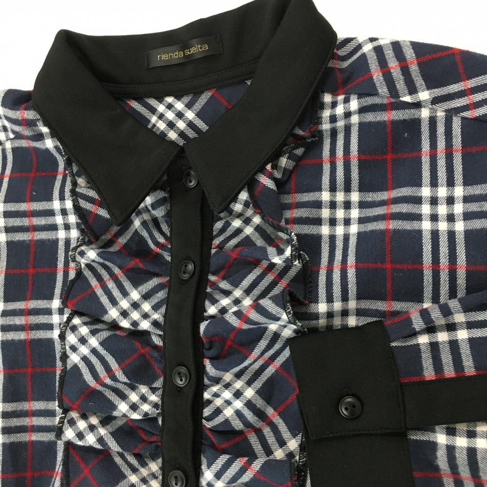 【超美品】リエンダスエルタ 長袖ポロシャツ ネイビー×白 チェック フリル レディース M ゴルフウェア rienda suelta