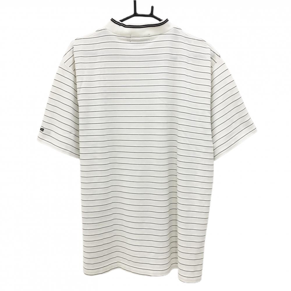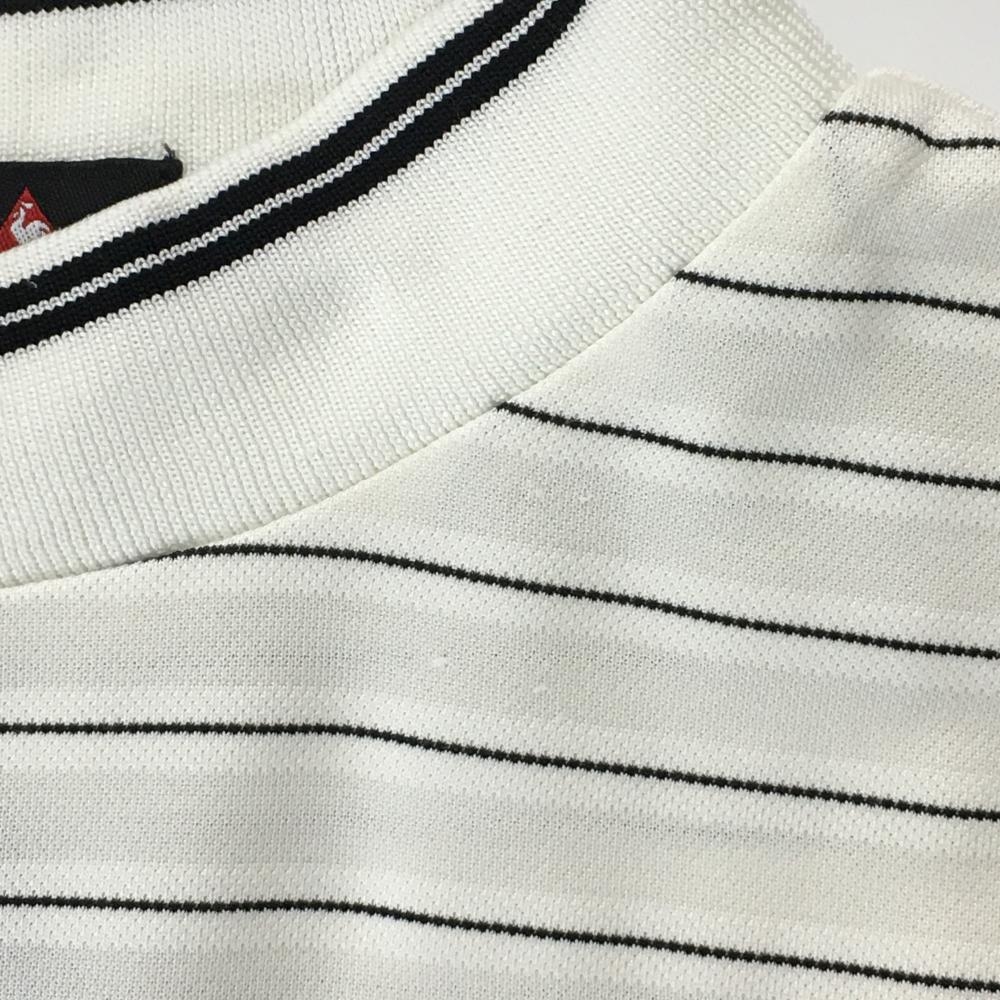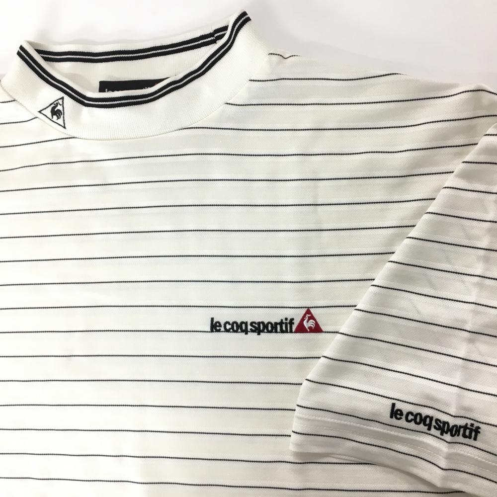 【超美品】ルコックゴルフ 半袖ハイネックシャツ 白×黒 ボーダー ストレッチ メンズ L ゴルフウェア le coq sportif