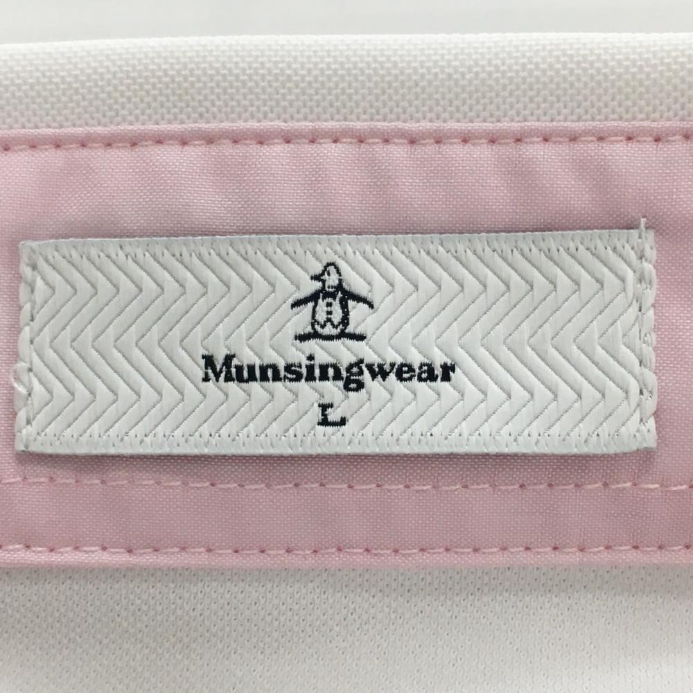 【美品】マンシングウェア 半袖ポロシャツ 白×ピンク 丸 袖ロゴ レディース L ゴルフウェア Munsingwear
