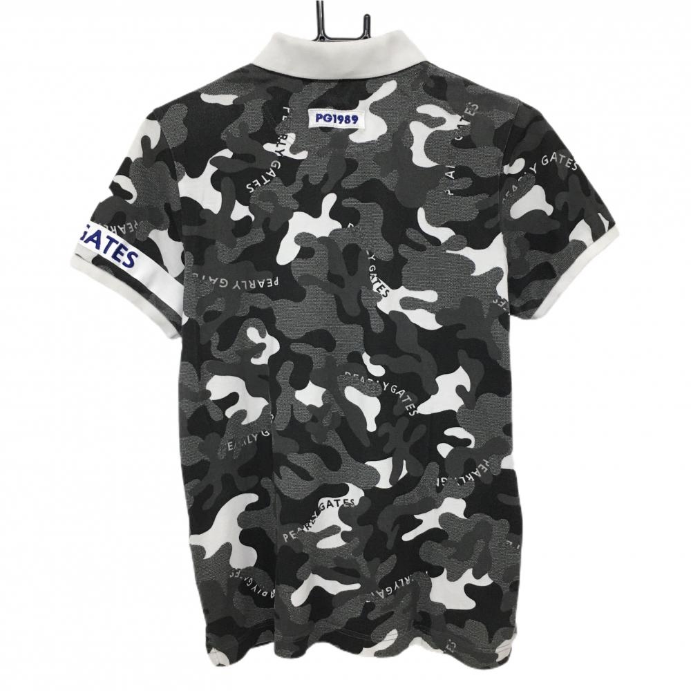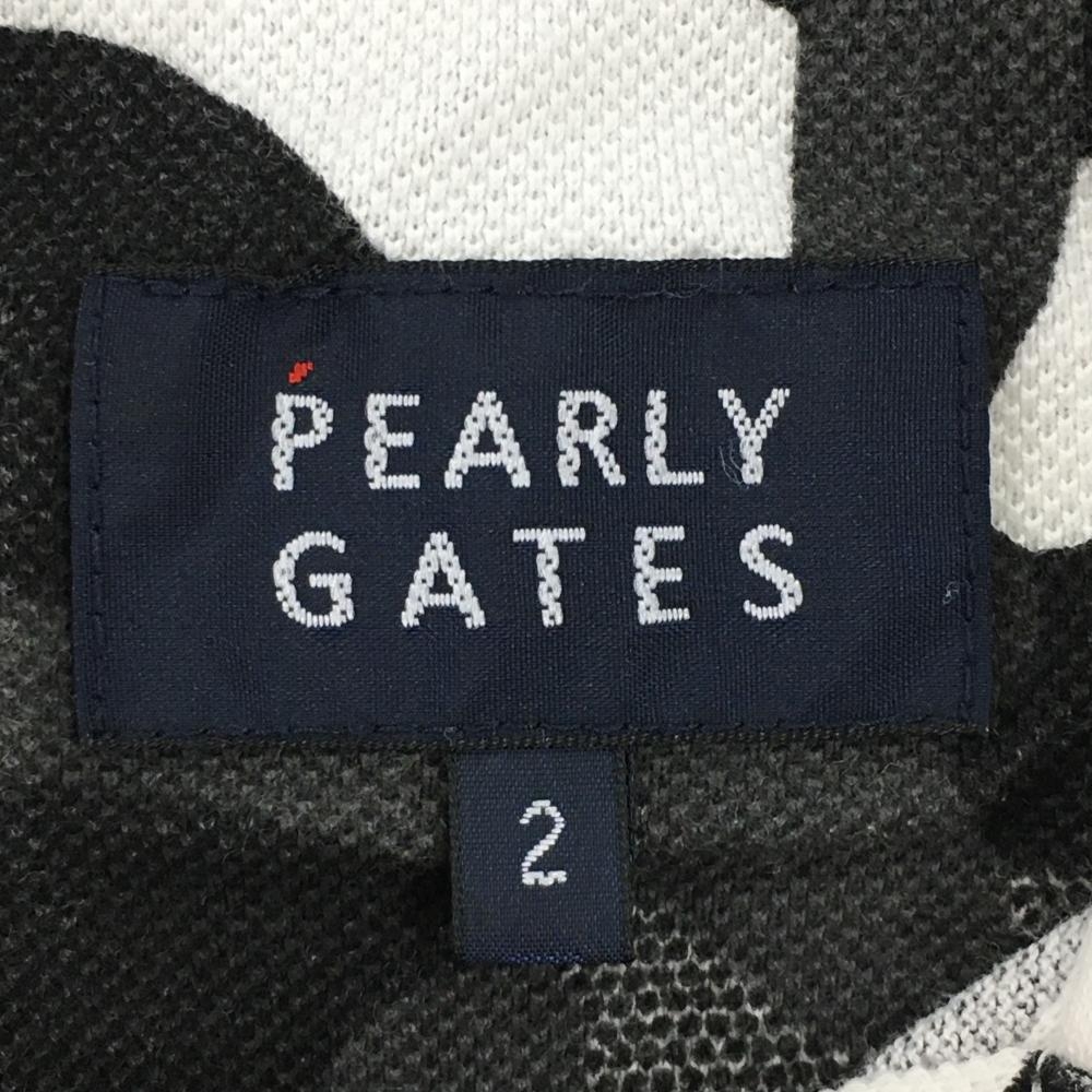 パーリーゲイツ 半袖ポロシャツ グレー×黒×白 迷彩 カモフラ コットン100% レディース 2(L) ゴルフウェア PEARLY GATES