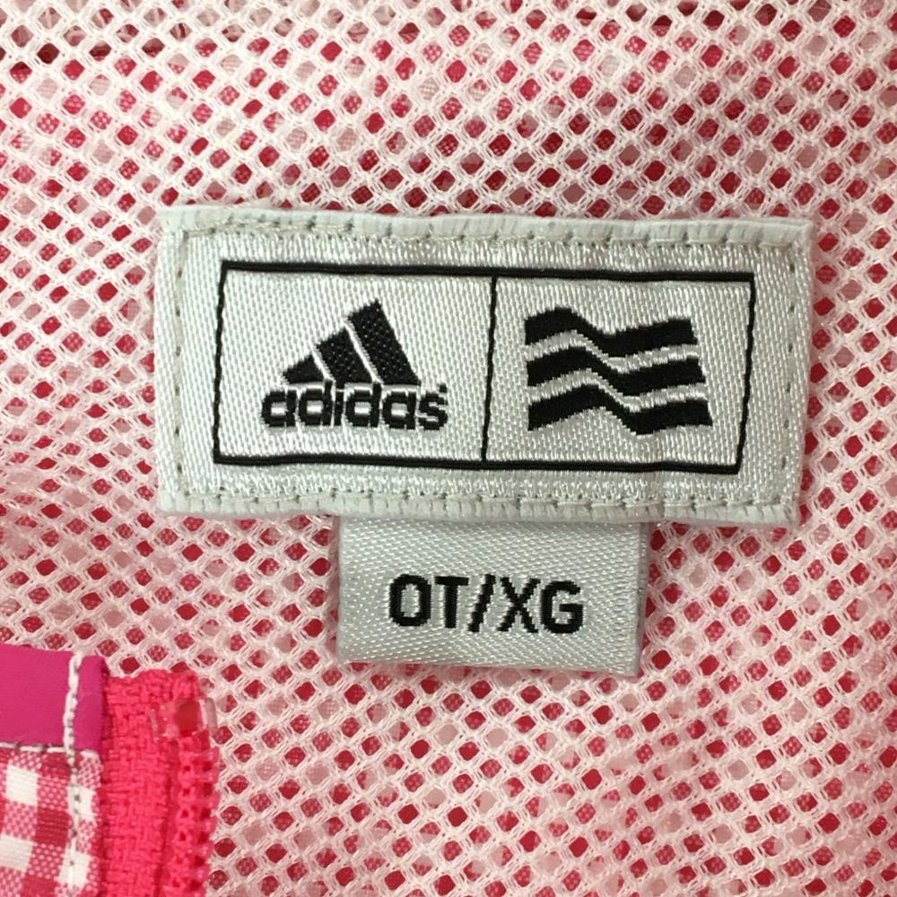 【超美品】アディダス 半袖ブルゾン ピンク×白 チェック柄 裏地メッシュ 袖口ボタン レディース OT/XG ゴルフウェア adidas