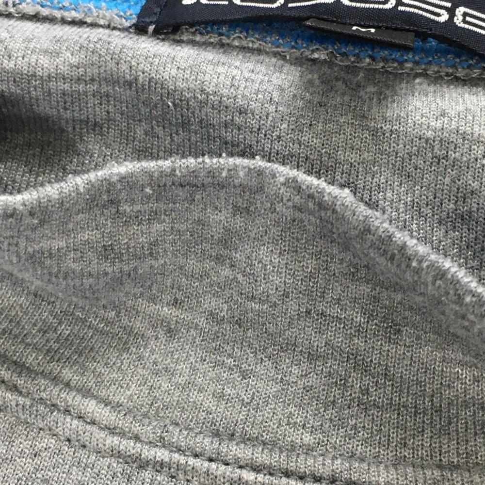 【超美品】ロサーセン 長袖ハイネックシャツ グレー×ライトブルー プリント バックロゴ刺しゅう メンズ M ゴルフウェア Rosasen