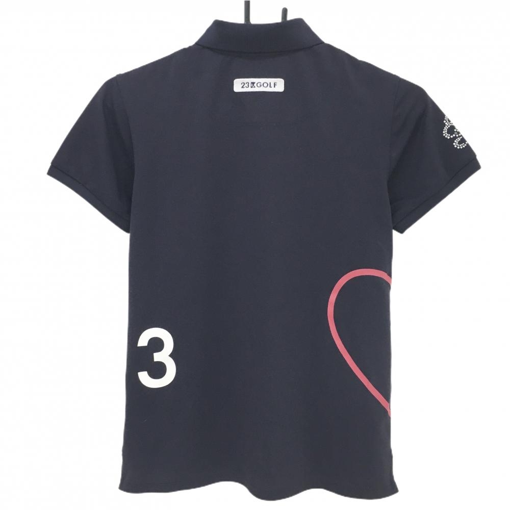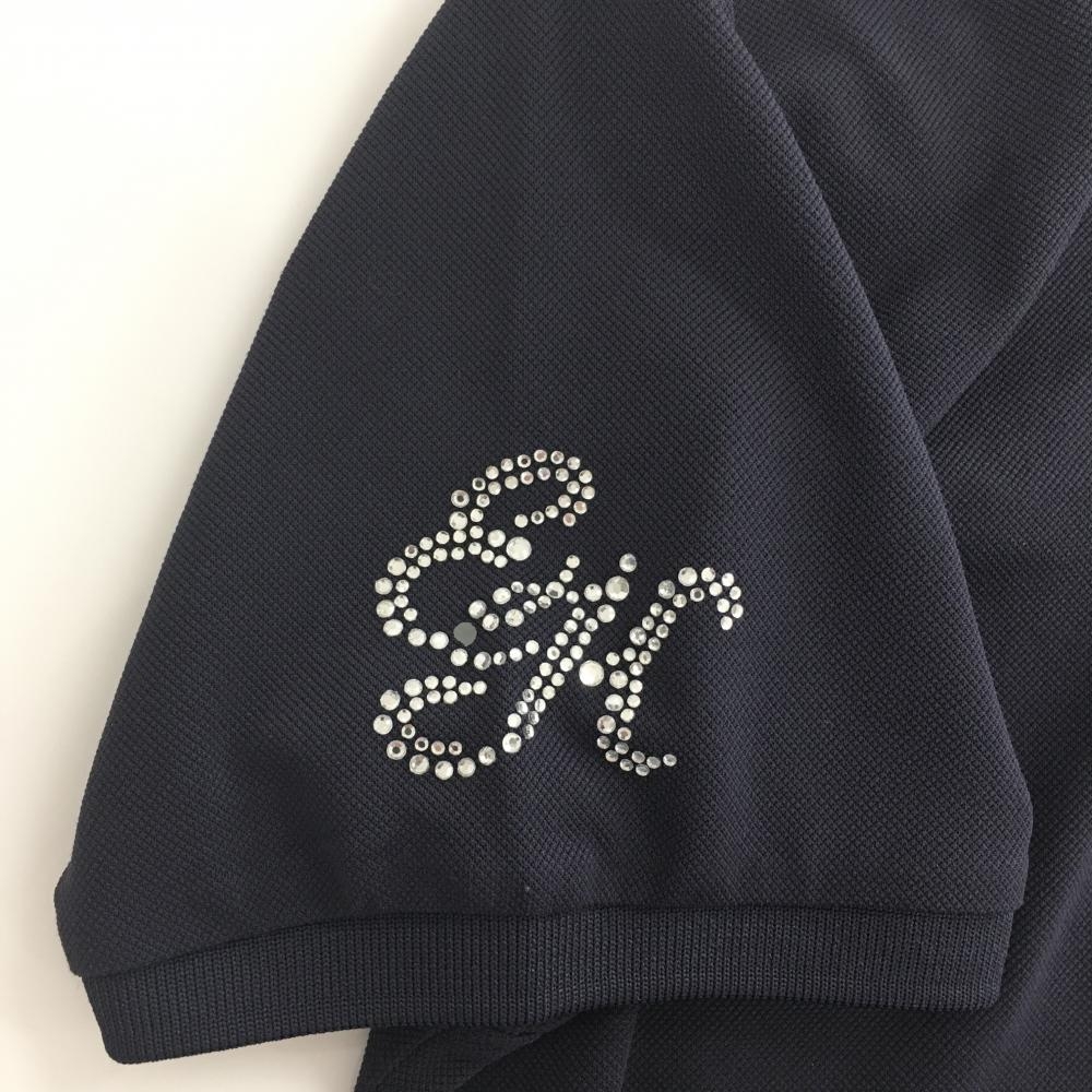 【美品】23区ゴルフ 半袖ポロシャツ ネイビー 袖ラインストーン レディース I(M) ゴルフウェア 23区