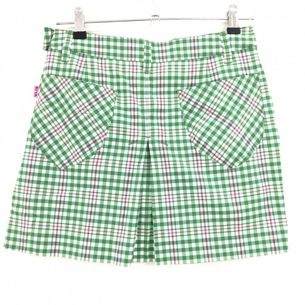 【超美品】ビバハート スカート 白×グリーン チェック柄 内側インナーパンツ レディース 40(M) ゴルフウェア VIVA HEART