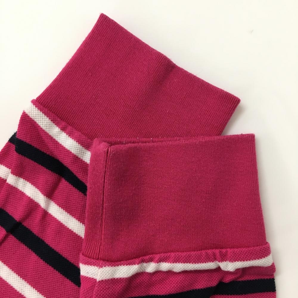 マンシングウェア 長袖ポロシャツ レッドピンク×ネイビー ボーダー ロゴ刺しゅう メンズ M ゴルフウェア Munsingwear