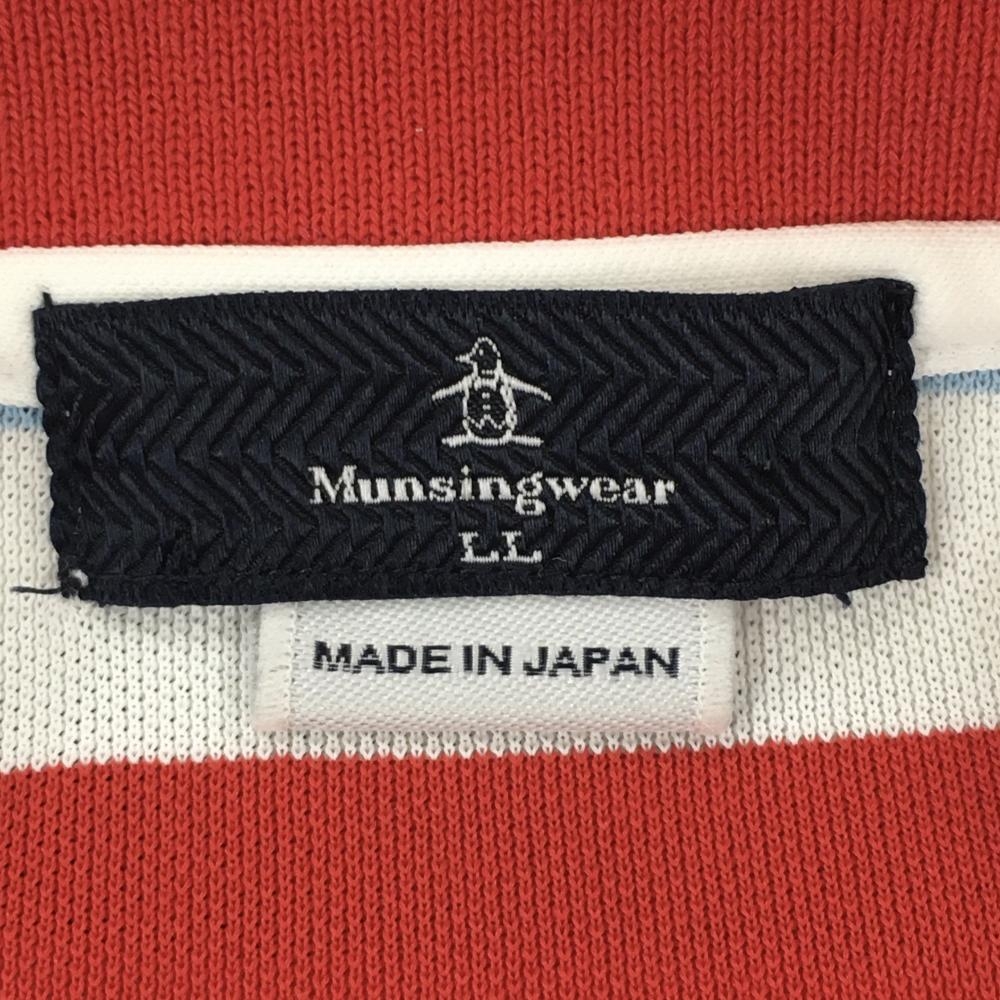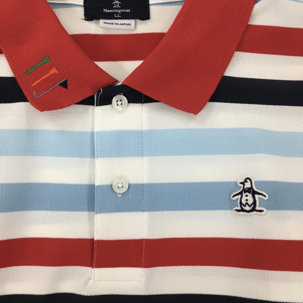 マンシングウェア 半袖ポロシャツ 白×レッド×ブルー ボーダー メンズ LL ゴルフウェア Munsingwear