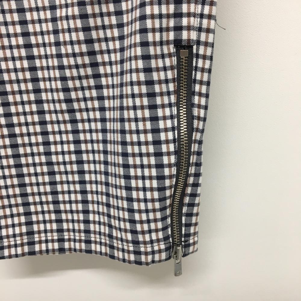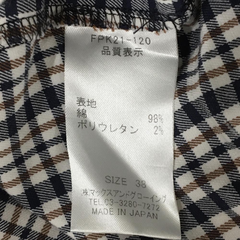 【超美品】ゾーイ 半端丈パンツ 白×ネイビー×ブラウン チェック 裾ファスナー レディース 38(M) ゴルフウェア ZOY