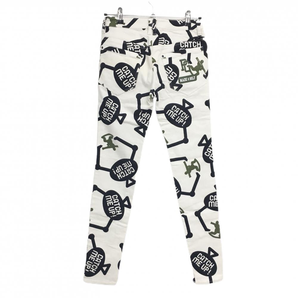 パーリーゲイツ パンツ 白×黒 クレーンゲーム柄 ストレッチ レディース 0(S) ゴルフウェア PEARLY GATES