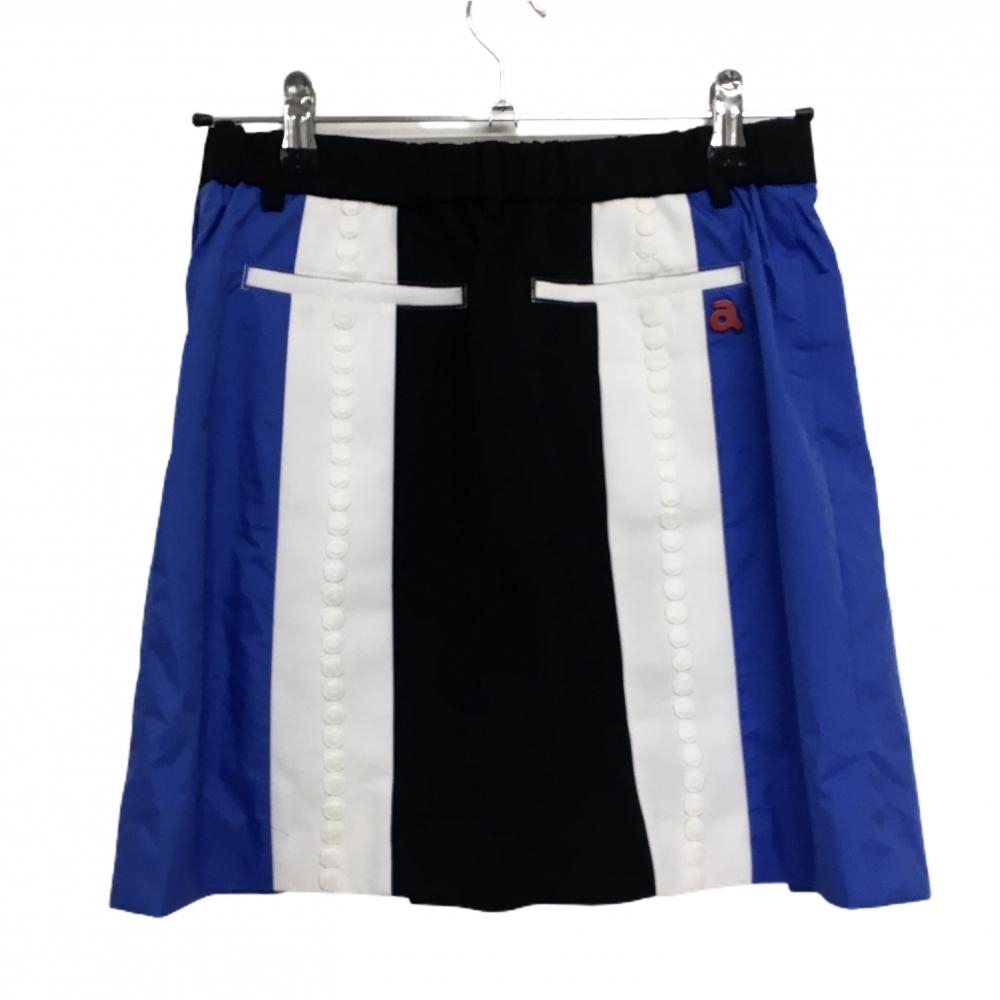 【超美品】アルチビオ スカート 黒×ブルー 異素材切替 裏地付 レディース M ゴルフウェア archivio