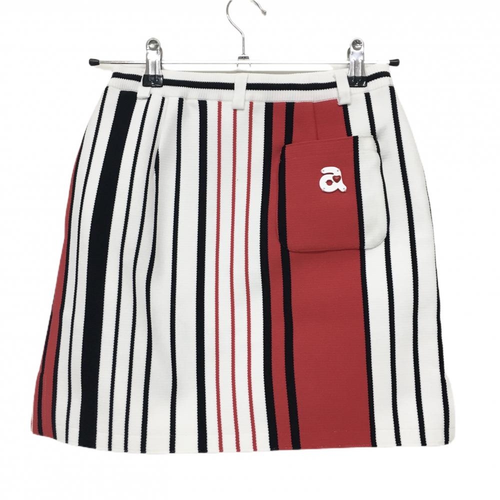 【超美品】アルチビオ ニットスカート 白×黒×レッド ストライプ レディース 36(S) ゴルフウェア archivio