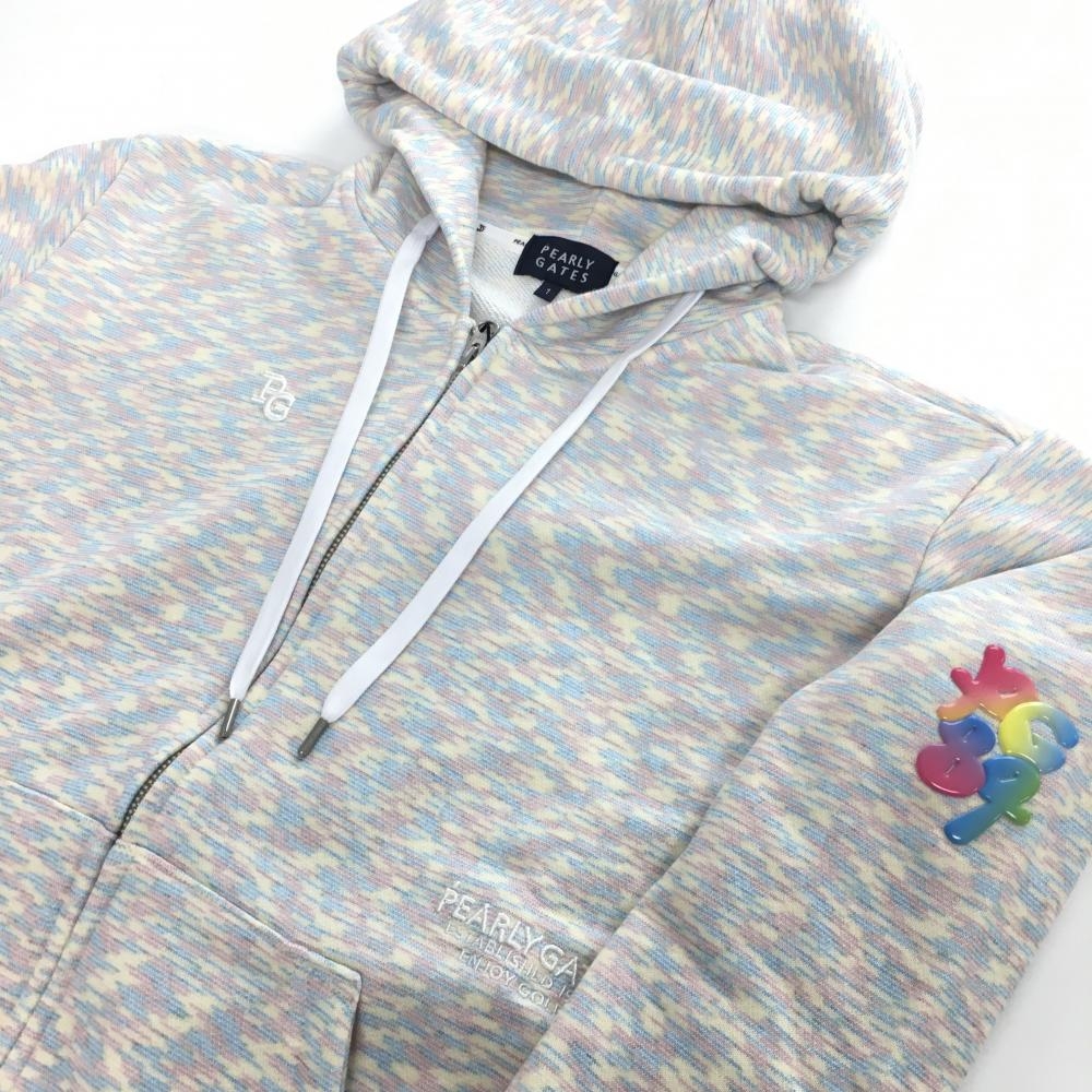 【新品】パーリーゲイツ ジップパーカー イエロー×ブルー×ピンク 総柄 35周年 レディース 1(M) ゴルフウェア 2024年モデル PEARLY GATES