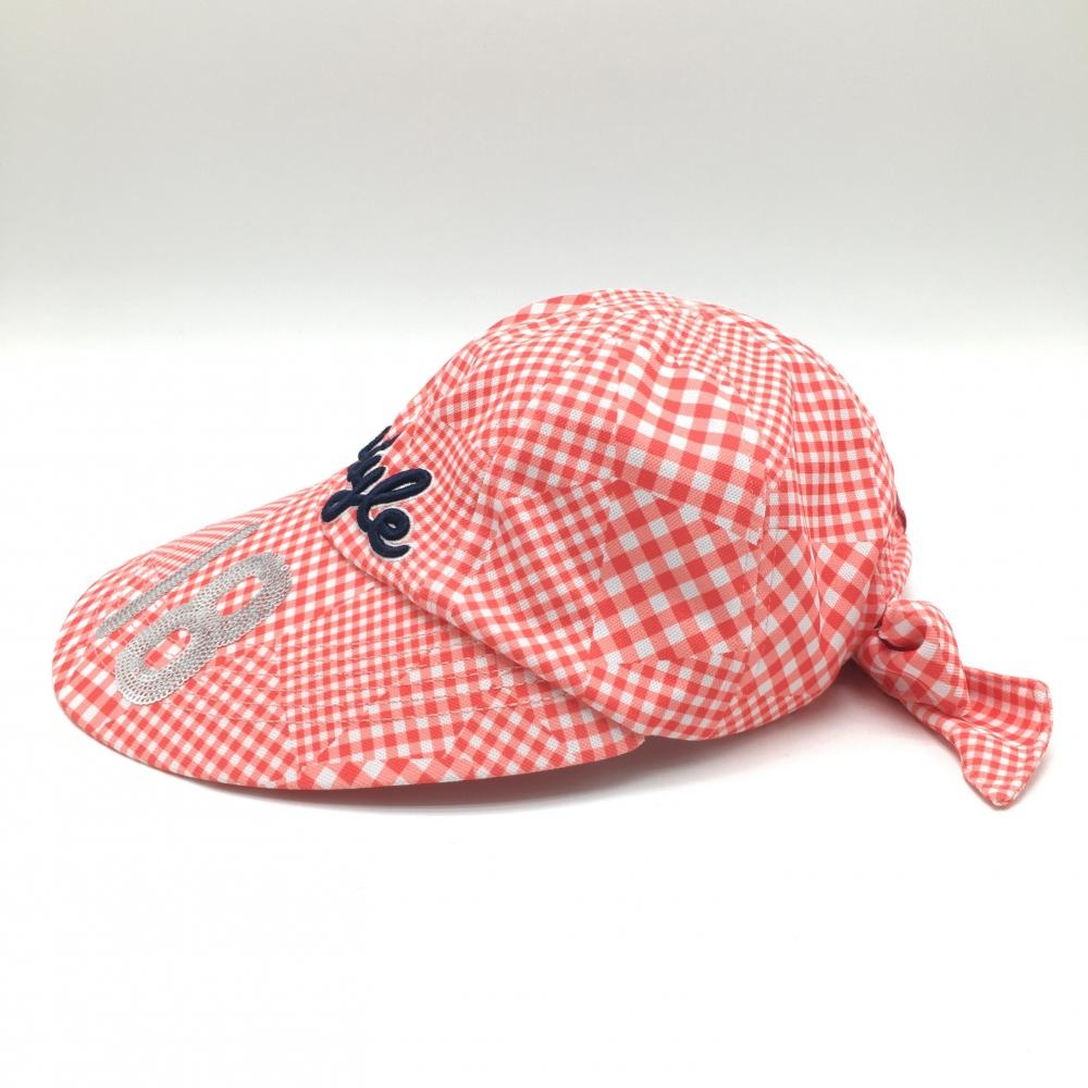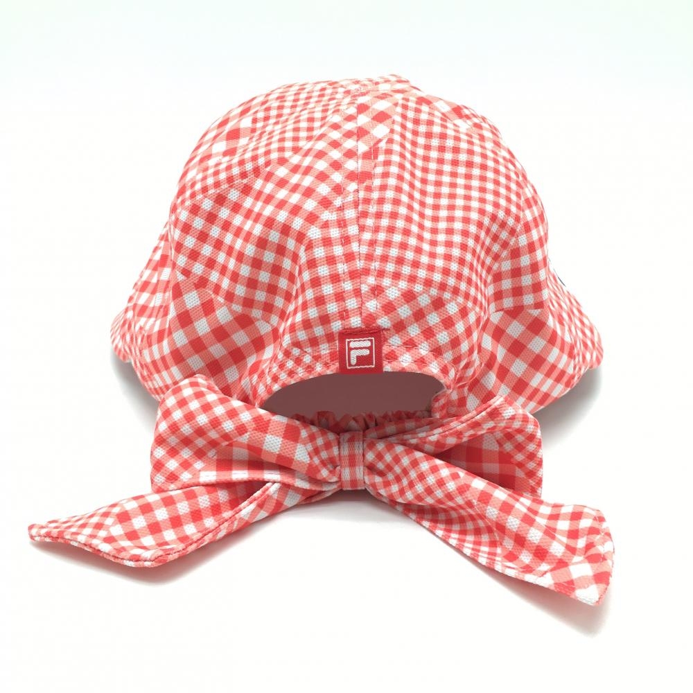 【超美品】フィラゴルフ つば広キャップ レッド×白 チェック柄 立体刺しゅう レディース ゴルフウェア FILA GOLF