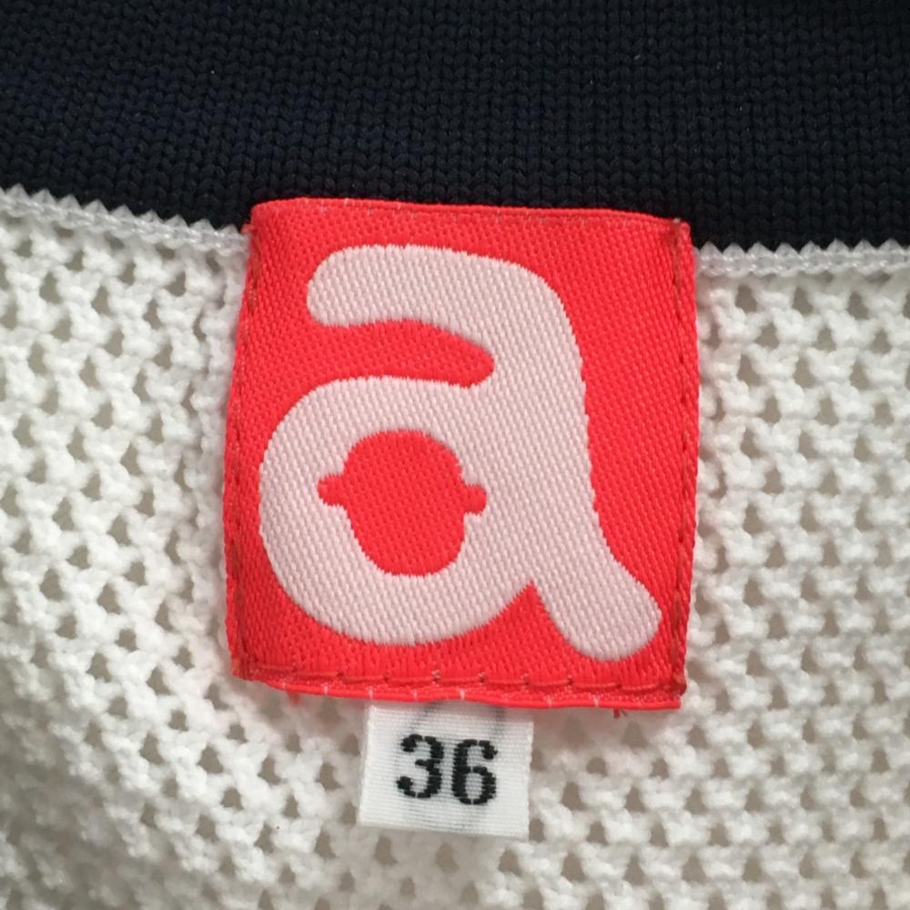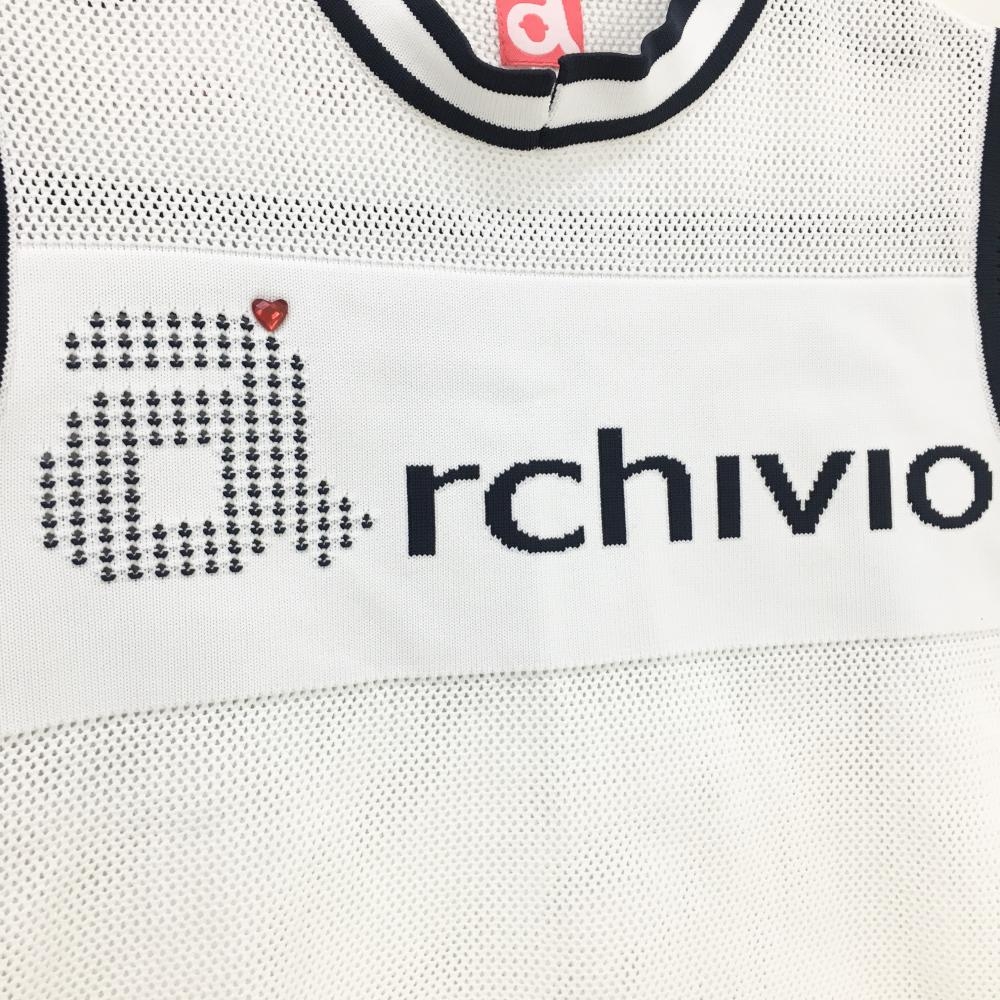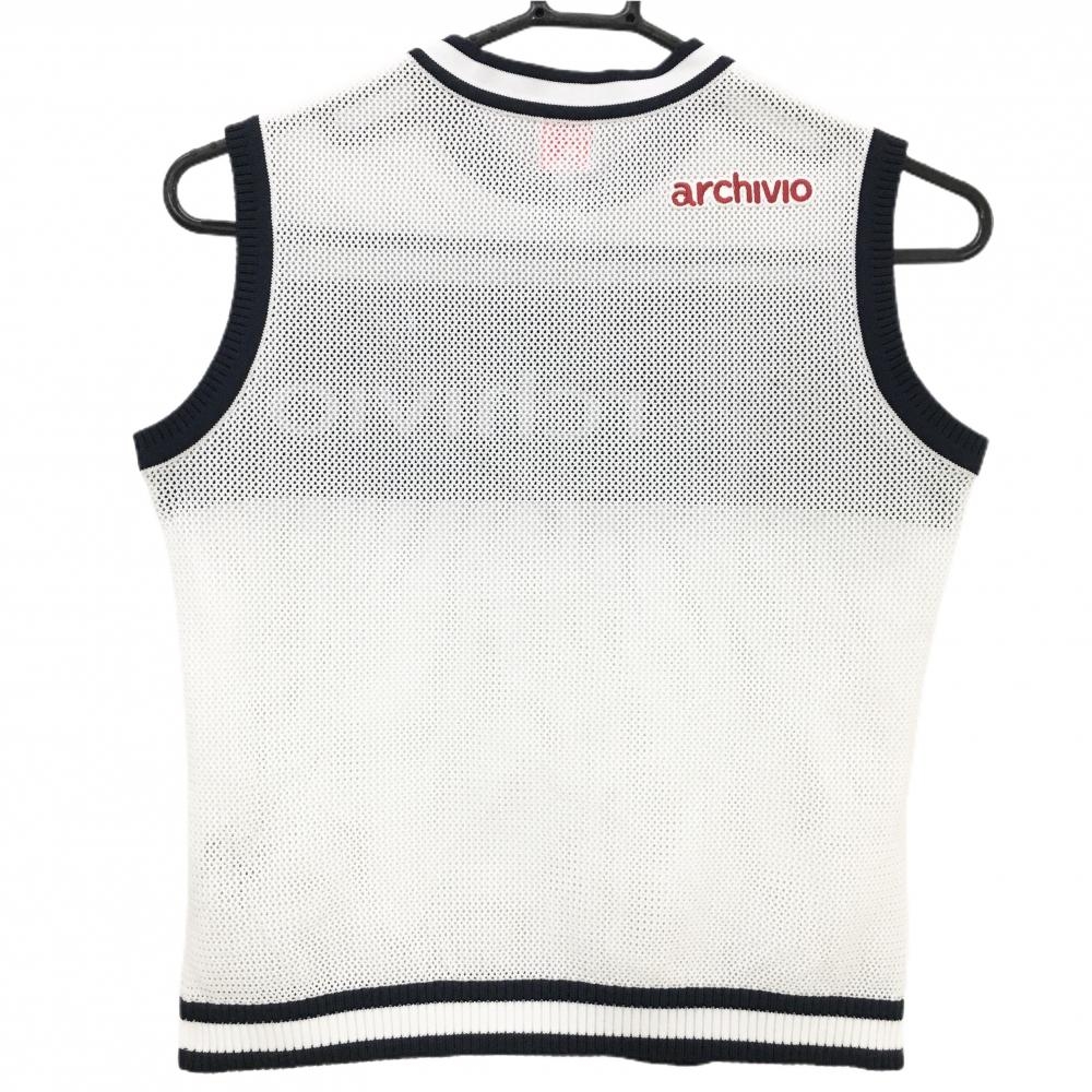 【美品】アルチビオ ニットベスト 白×ネイビー 透かし編み 透け感 レディース 36(S) ゴルフウェア archivio