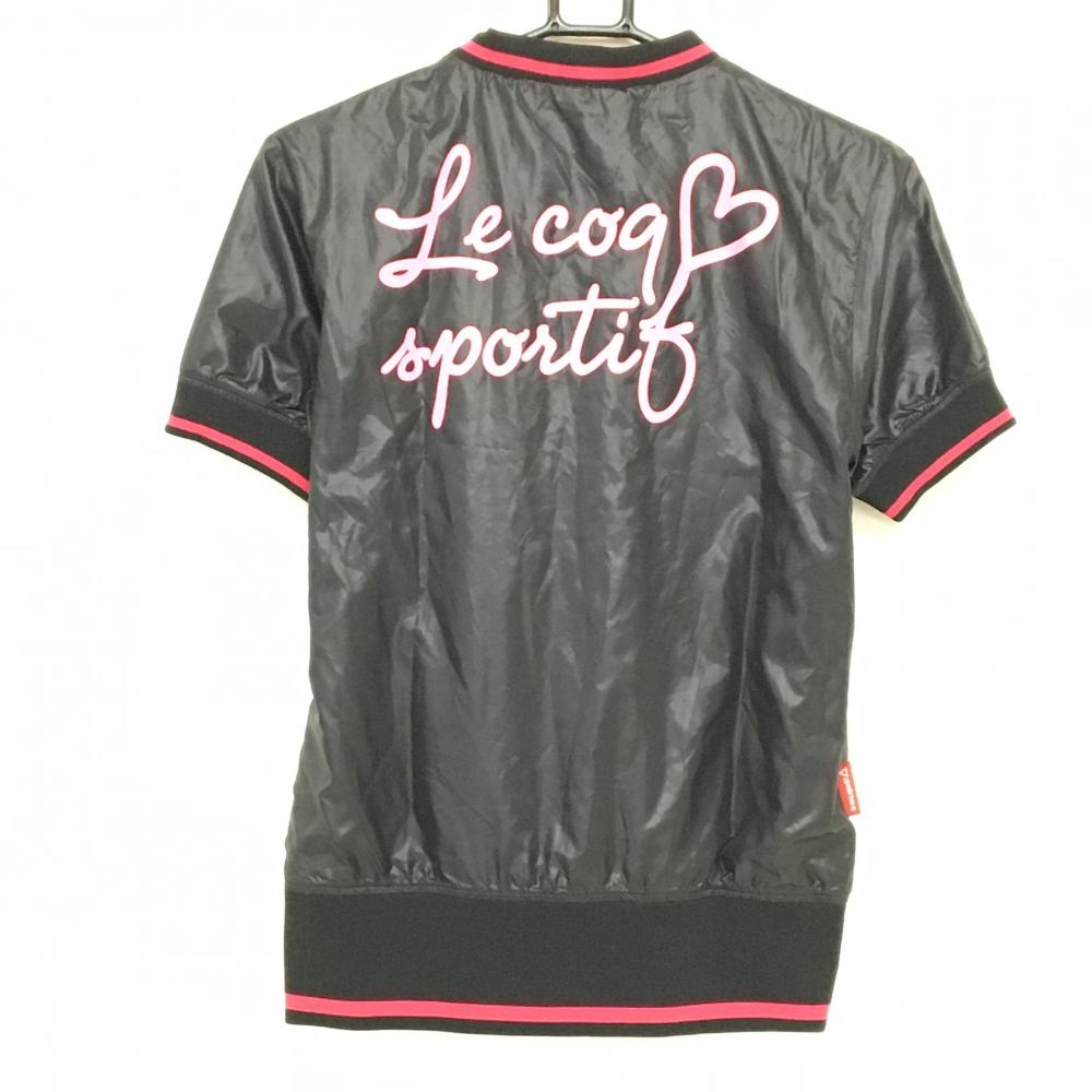 【美品】ルコックゴルフ 半袖ブルゾン 黒×ピンク 肩ジップ 裏地メッシュ レディース M ゴルフウェア le coq sportif