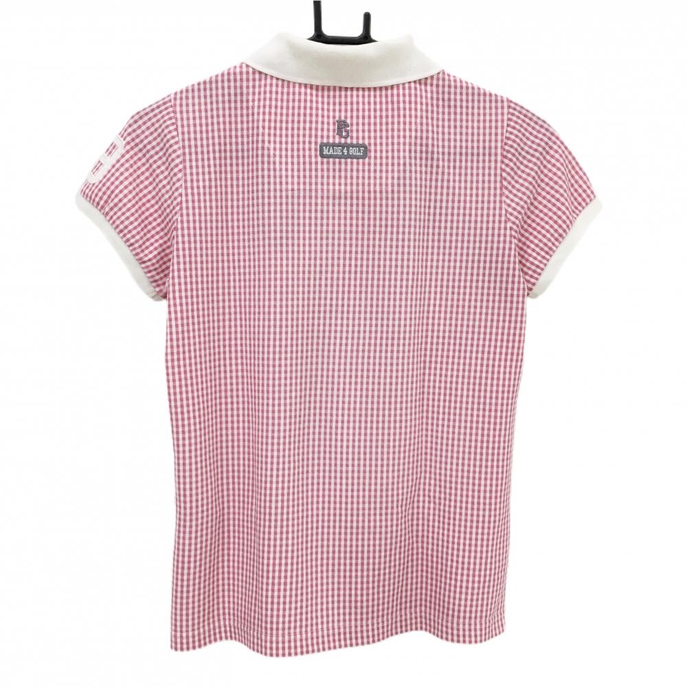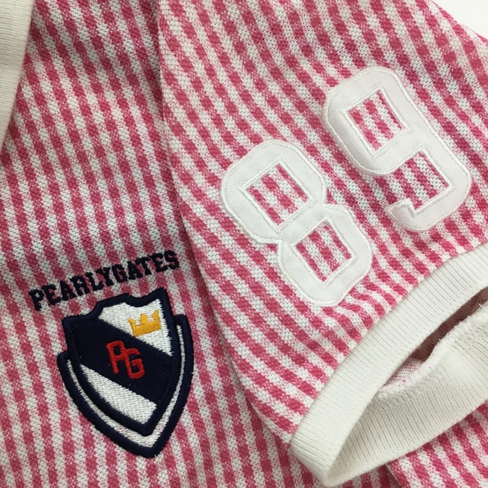パーリーゲイツ 半袖ポロシャツ 白×ピンク ギンガムチェック ロゴワッペン レディース 0(S) ゴルフウェア PEARLY GATES