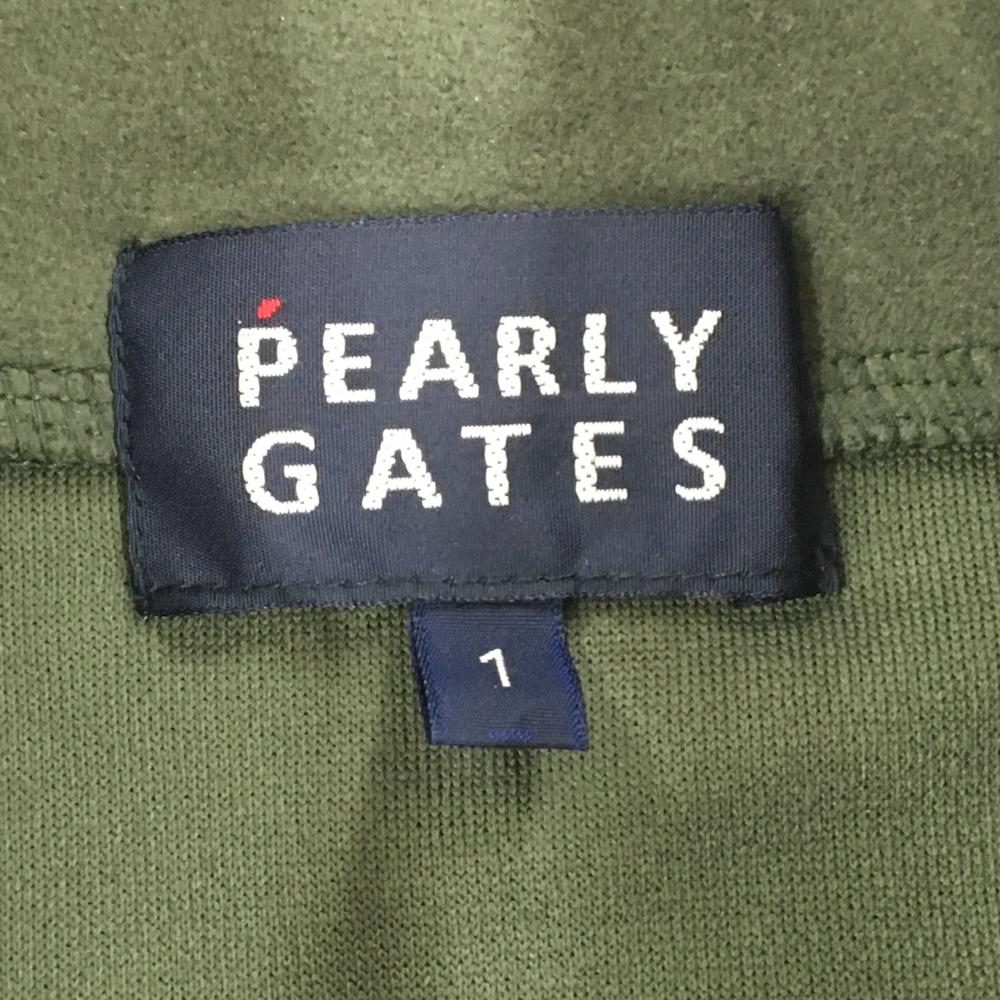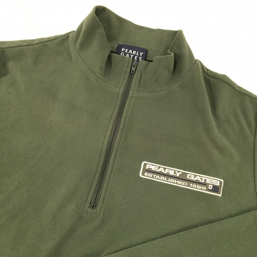 【美品】パーリーゲイツ 長袖ハイネックシャツ カーキ 表起毛 ロゴ白 ハーフジップ レディース 1(M) ゴルフウェア PEARLY GATES