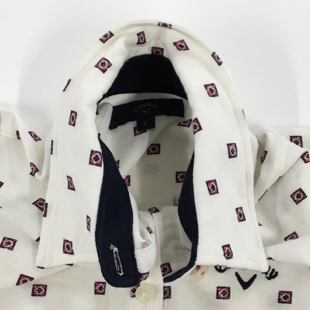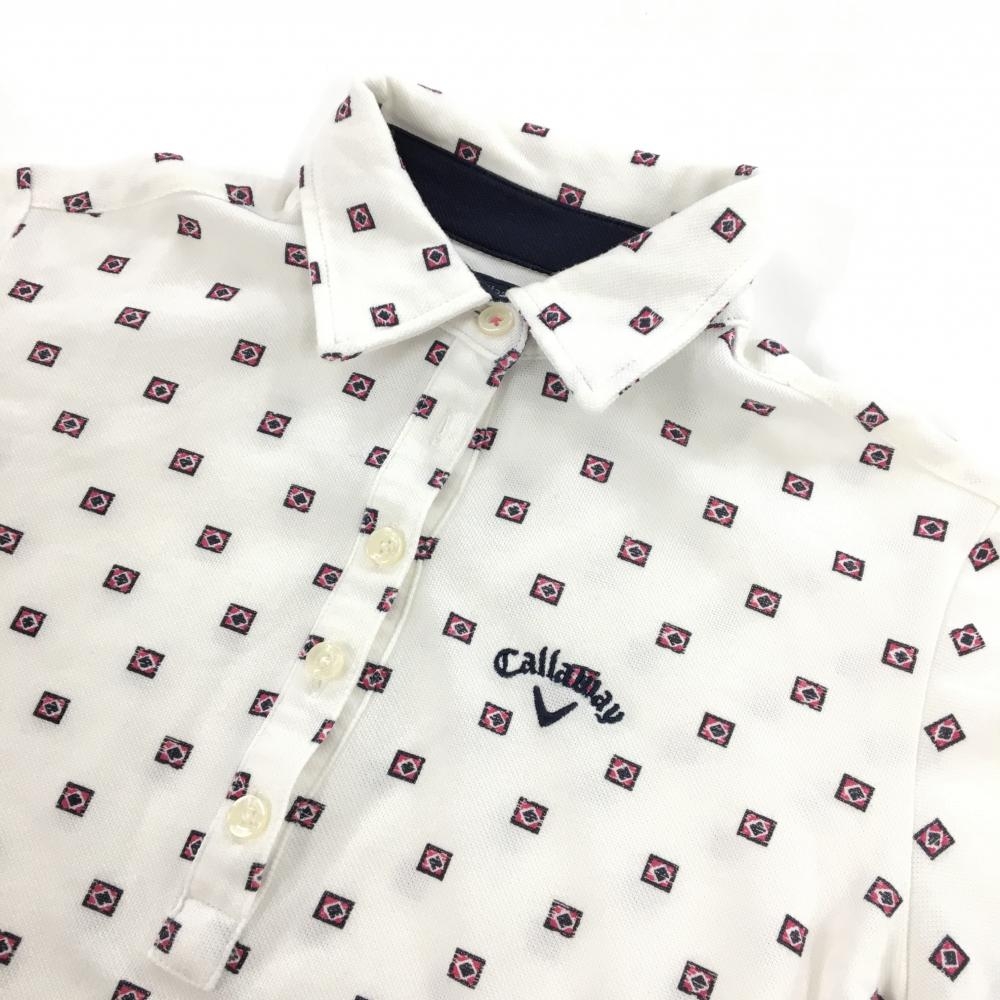 キャロウェイ 半袖ポロシャツ 白×レッド 総柄 レディース S ゴルフウェア Callaway