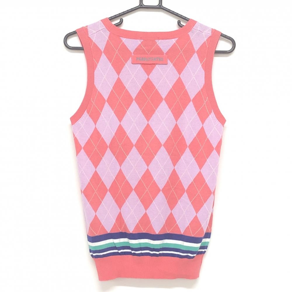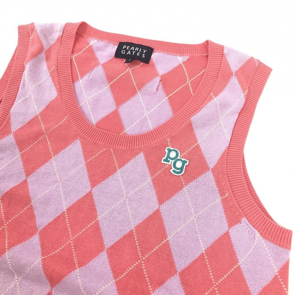 【超美品】パーリーゲイツ ニットベスト ライトピンク×ライトパープル アーガイル レディース 1(M) ゴルフウェア PEARLY GATES