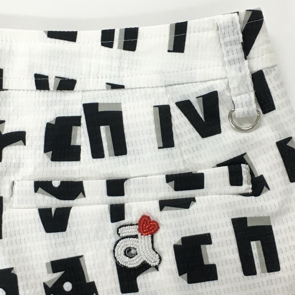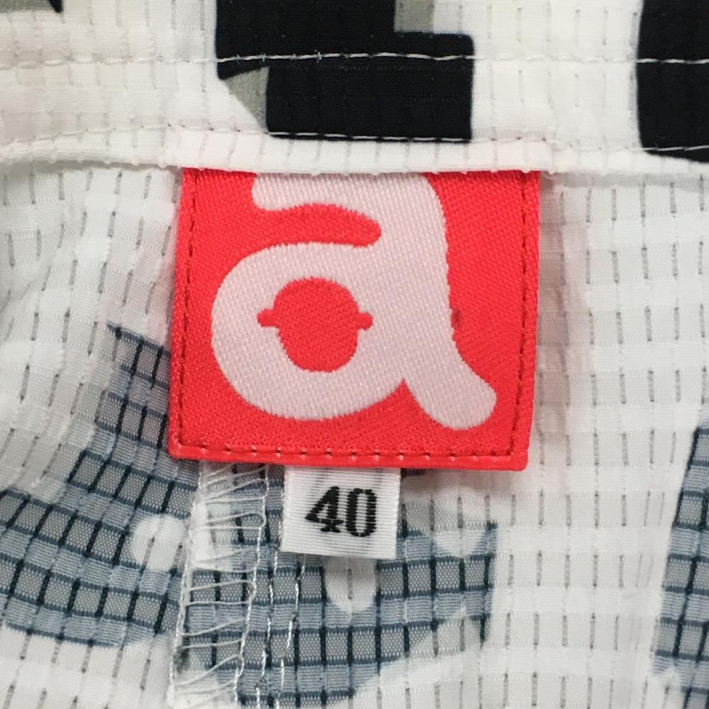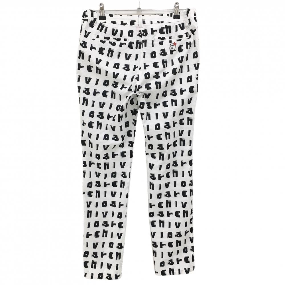【美品】アルチビオ パンツ 白×黒 ロゴ総柄 薄手 メッシュ調生地 レディース 40(L) ゴルフウェア archivio