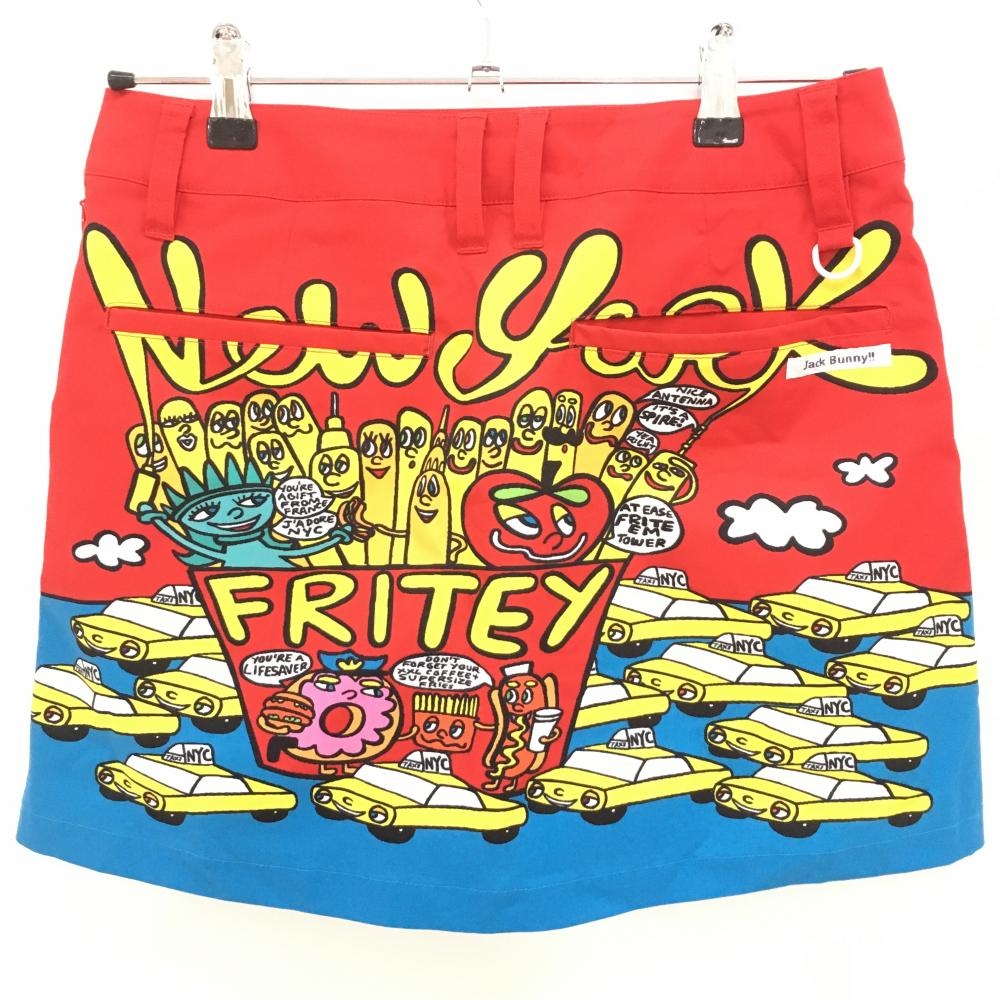 【美品】ジャックバニー スカート レッド×イエロー×ブルー ピーターマルココラボ タクシー レディース 1(M) ゴルフウェア Jack Bunny