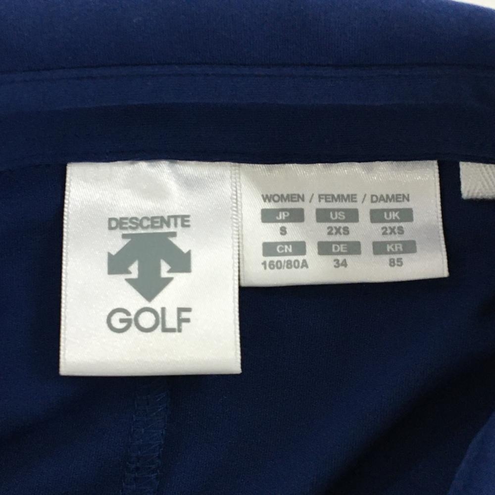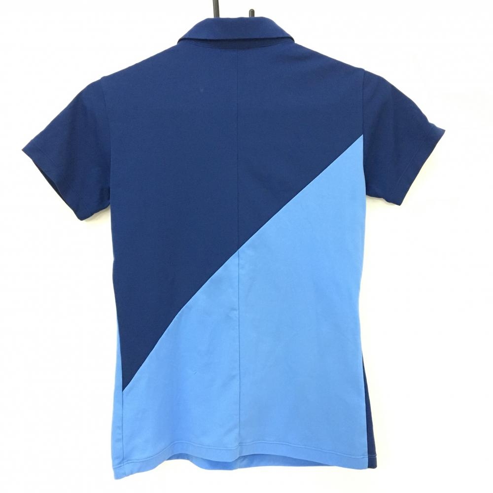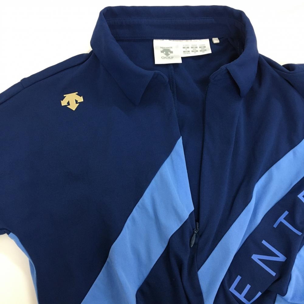 デサントゴルフ 半袖ポロシャツ ネイビー×ライトブルー 切替 ハーフジップ レディース S ゴルフウェア DESCENTE