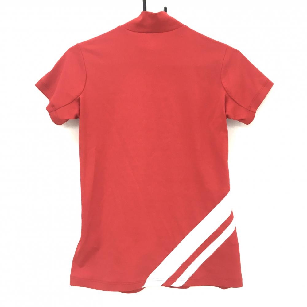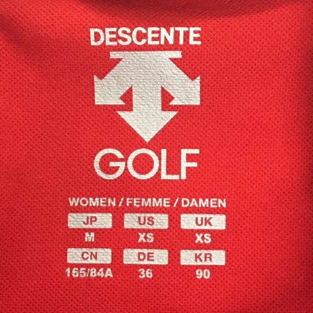 【超美品】デサントゴルフ 半袖ハイネックシャツ レッド×白 フロントロゴプリント 中田英寿 レディース M ゴルフウェア DESCENTE