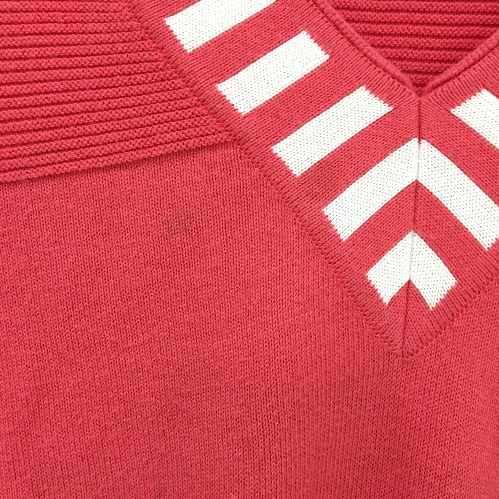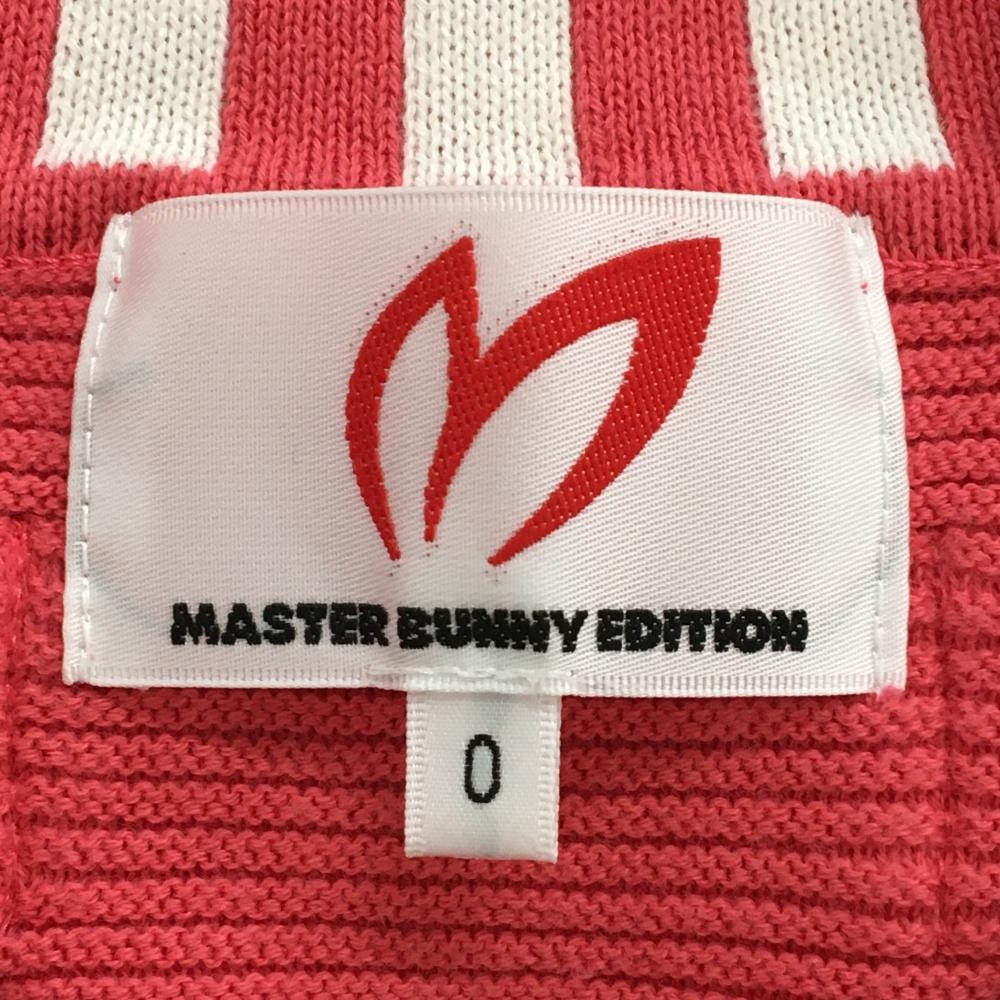 マスターバニー セーター ピンク×白 Vネック ニット 胸汚れ、腹部・袖口毛羽立ち レディース 0 ゴルフウェア MASTER BUNNY EDITION
