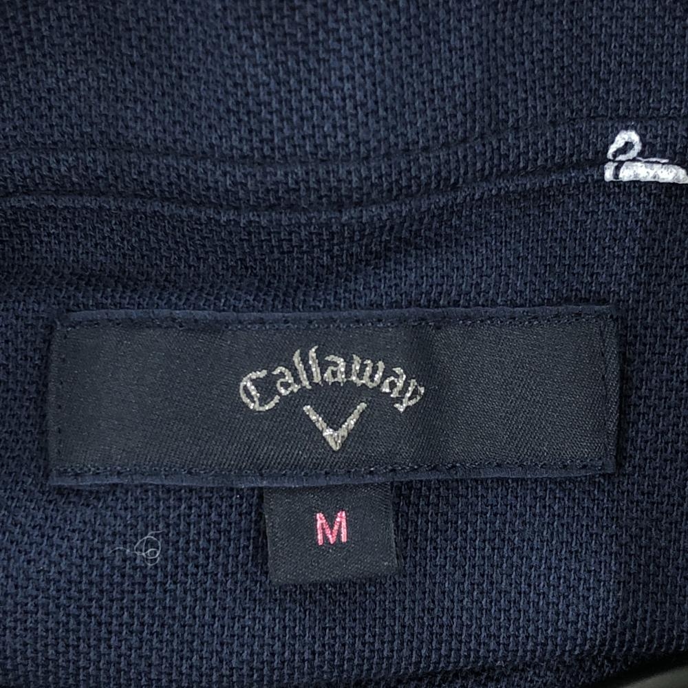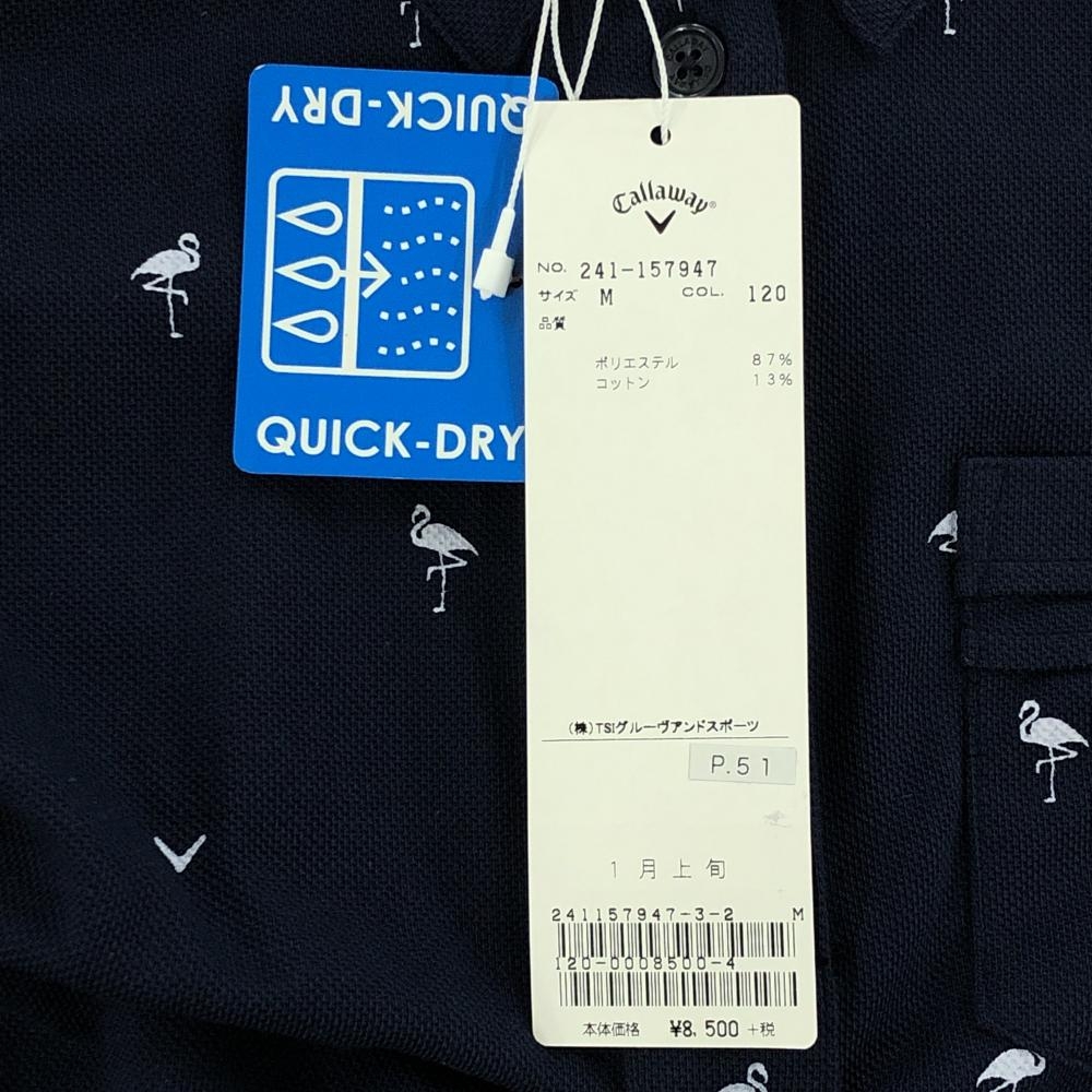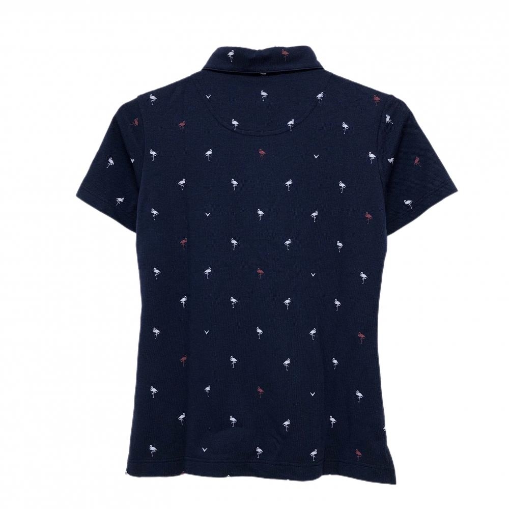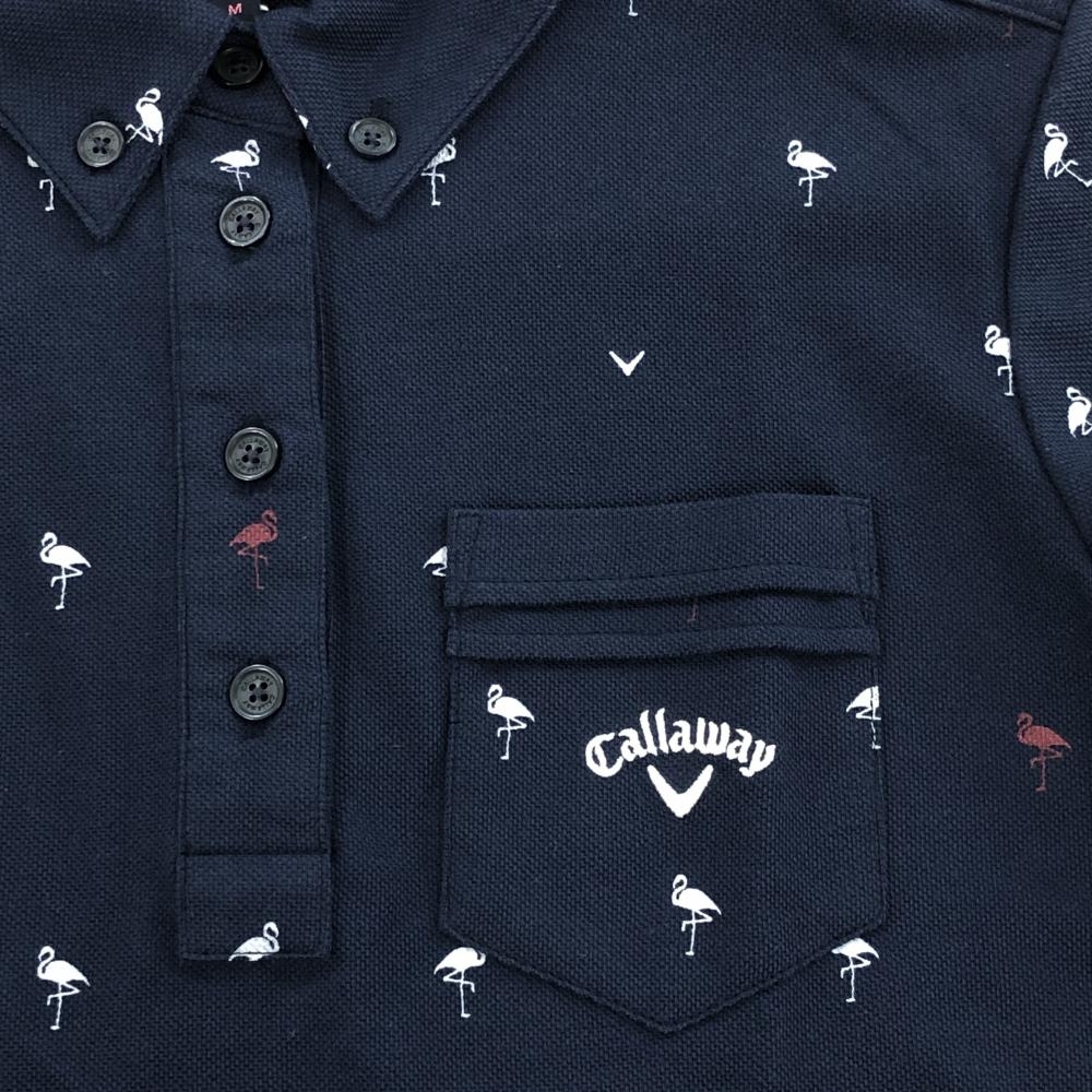 【美品】キャロウェイ 半袖ポロシャツ ネイビー×白 フラミンゴ柄 胸ポケット ボタンダウン レディース M ゴルフウェア Callaway