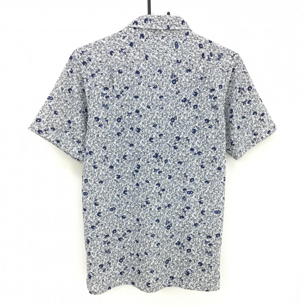 【超美品】ティゴラ 半袖ポロシャツ 白×黒×ネイビー 小花柄 ボタンダウン 胸ポケット付 メンズ M ゴルフウェア TIGORA