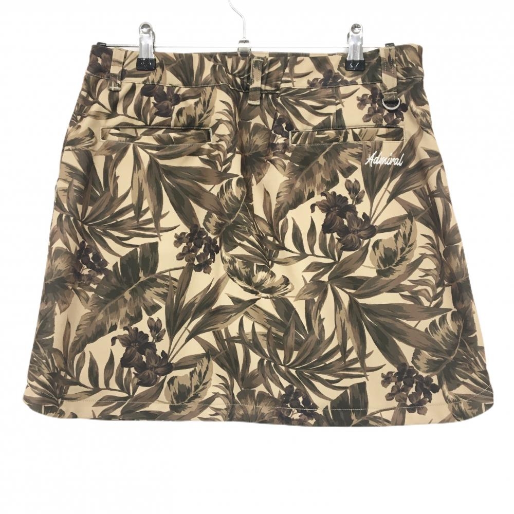 【超美品】アドミラル スカート ベージュ×カーキ リーフ柄 裾ロゴ ウエスト後ろゴム レディース LL ゴルフウェア Admiral