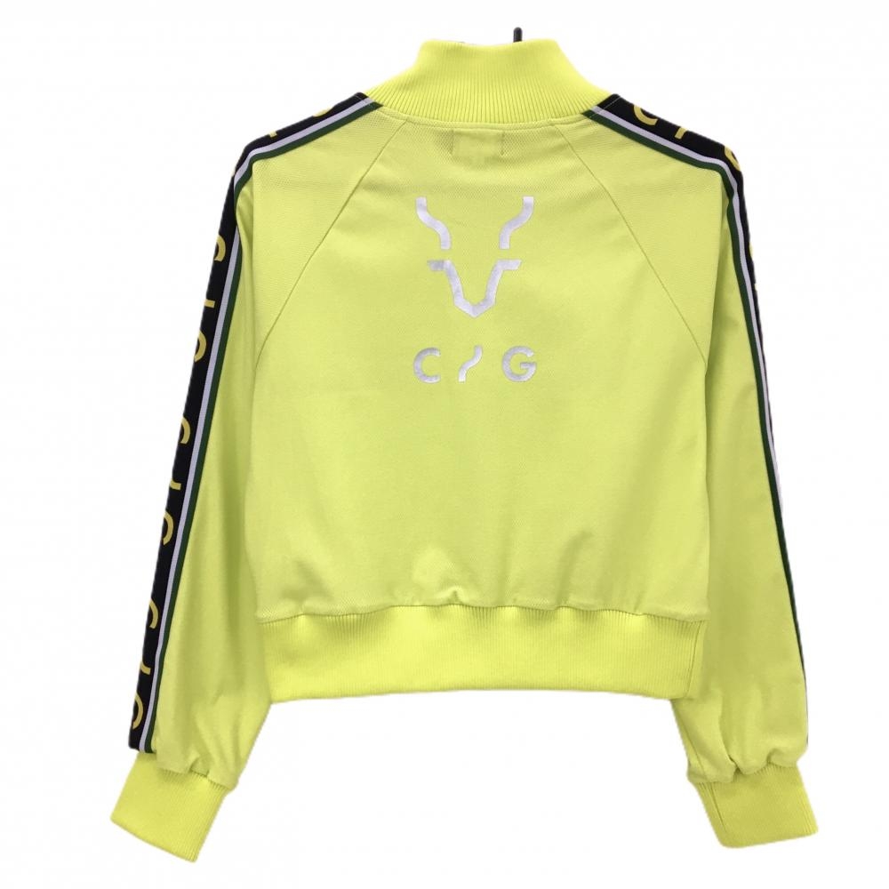 【新品】CPG ジャケットブルゾン グリーンイエロー×黒 メッシュ調 袖ロゴライン レディース 2(M) ゴルフウェア 2024年モデル CPG
