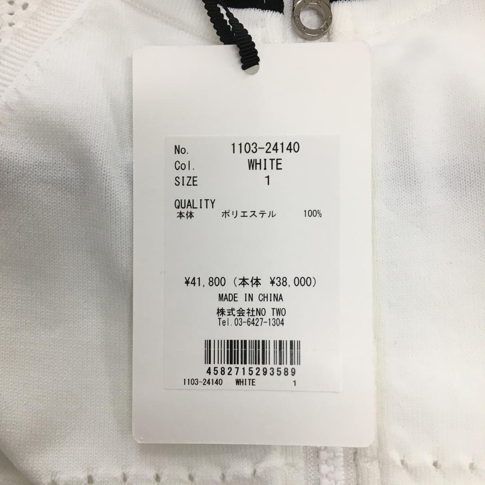 【新品】CPG ニットジャケット 白×黒 透かし編み 立体ロゴ レディース 1(S) ゴルフウェア 2024年モデル CPG
