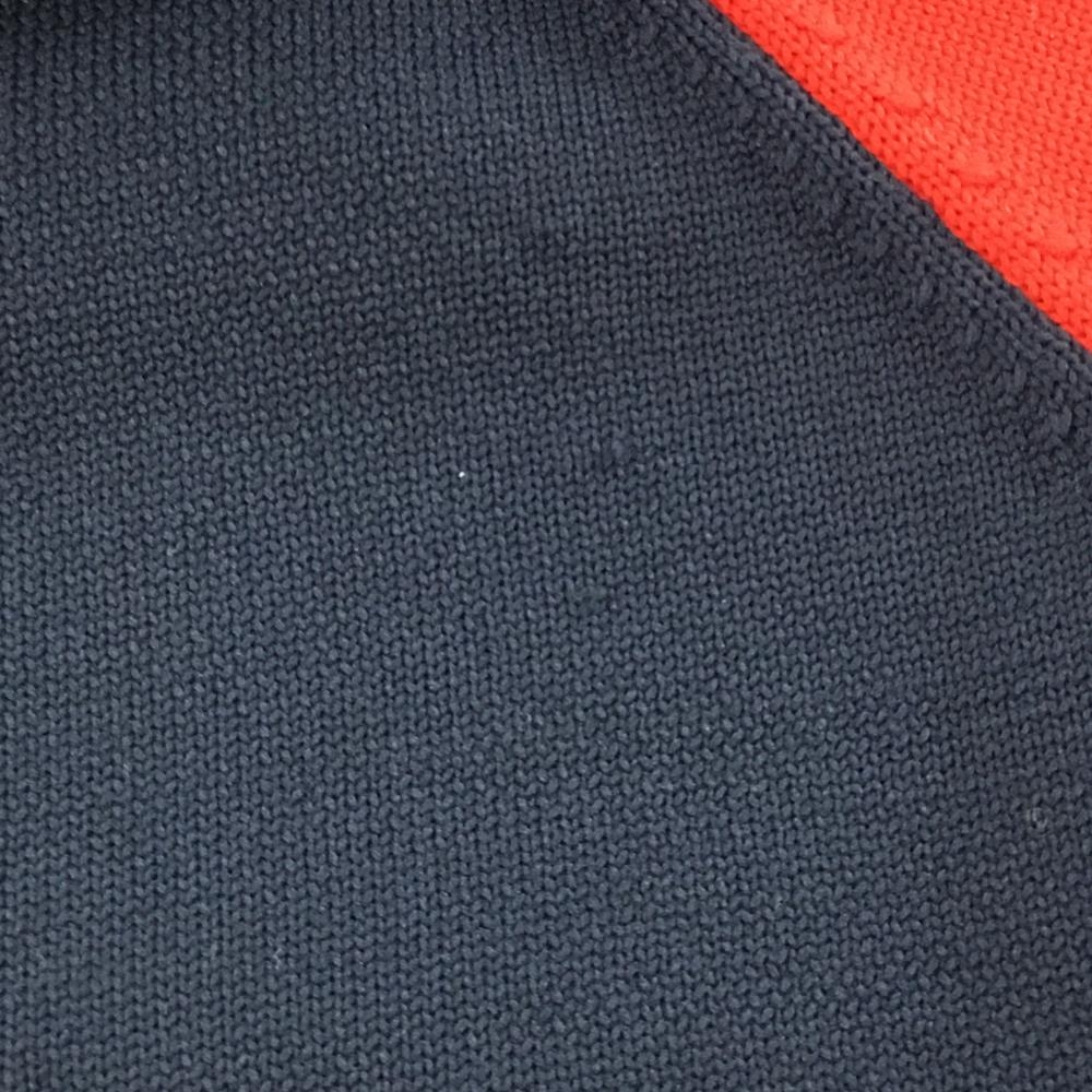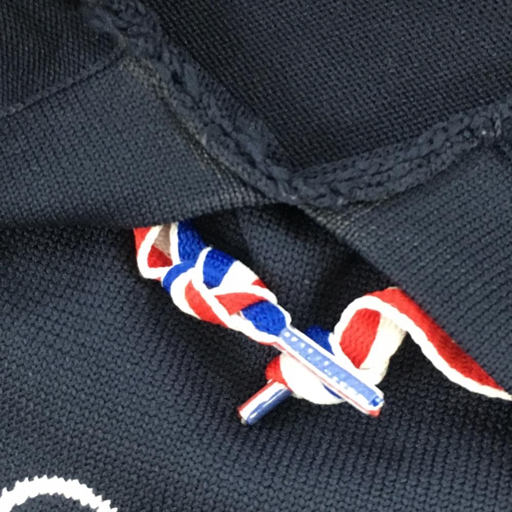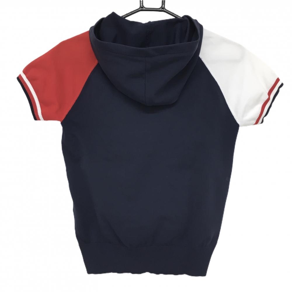 【美品】ルコック 半袖ニットパーカー ネイビー×レッド×白 フロントロゴ セーター レディース ゴルフウェア le coq sportif