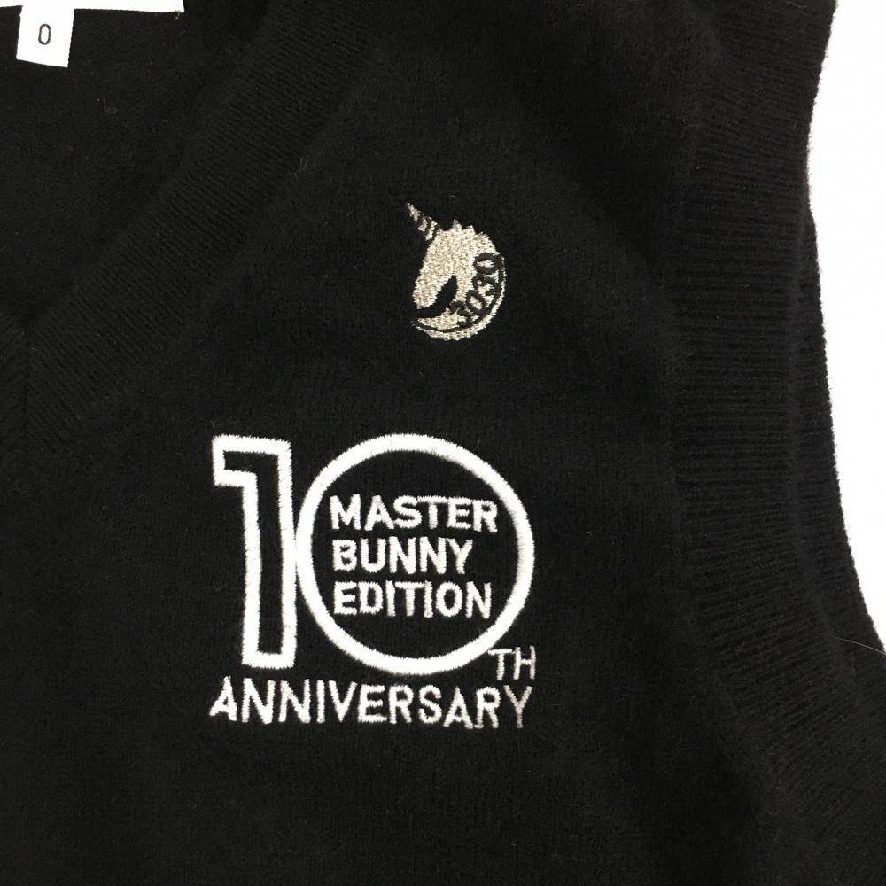 【超美品】マスターバニー ニットベスト 黒 Vネック カシミヤ100% 10周年 レディース 0(S) ゴルフウェア MASTER BUNNY EDITION