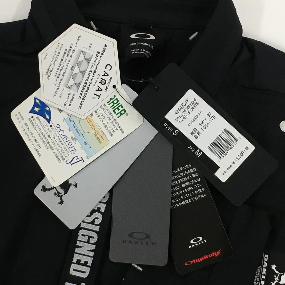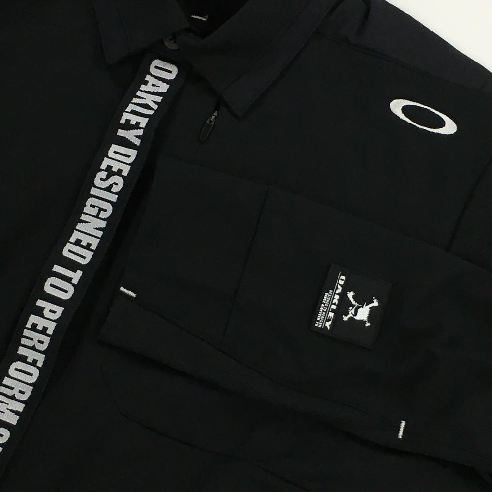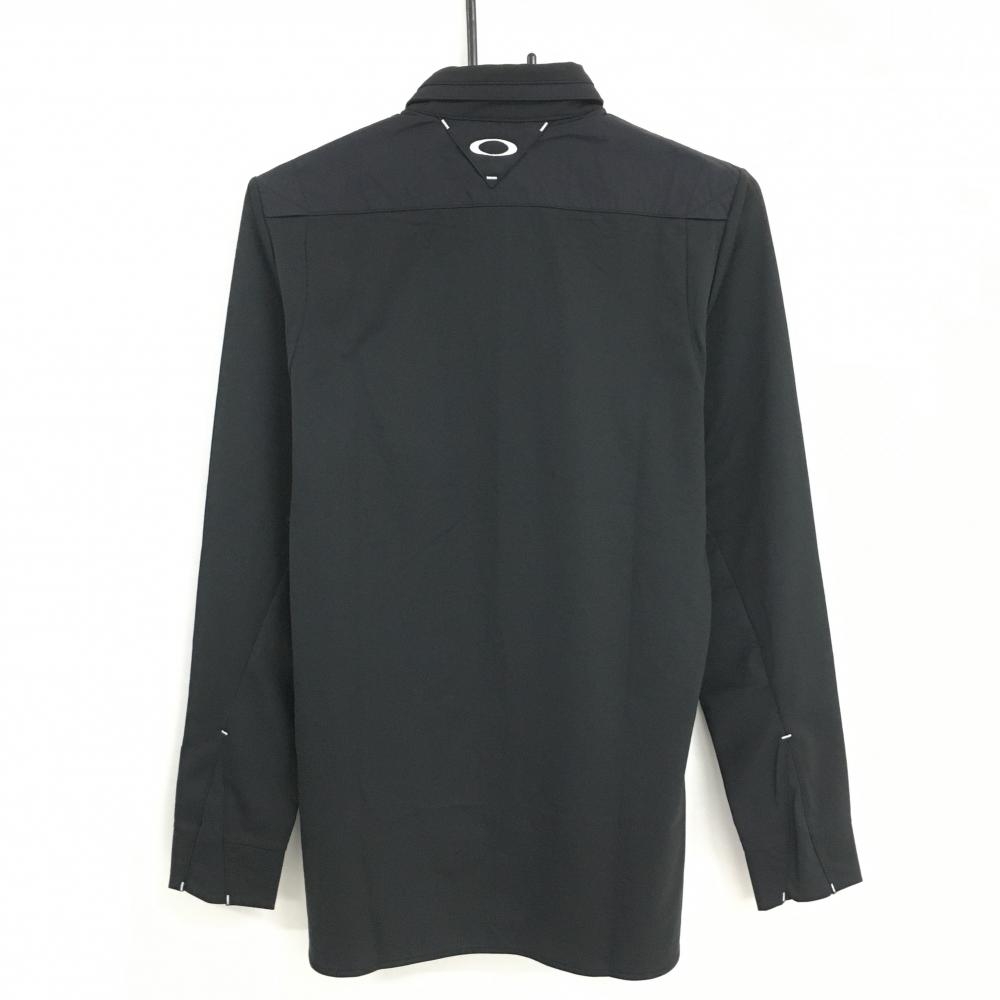 【新品】オークリー 長袖ポロシャツ 黒×白 前立てロゴ 吸汗速乾 防風 メンズ M ゴルフウェア Oakley