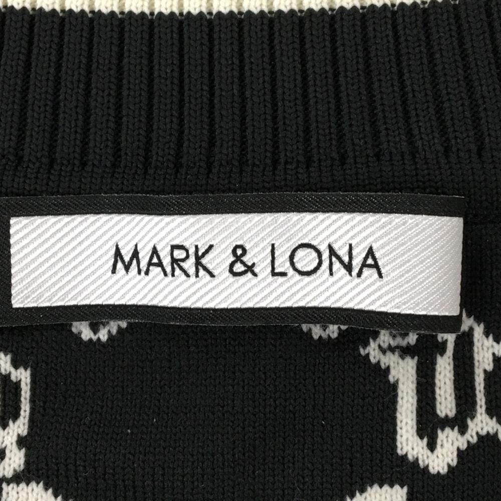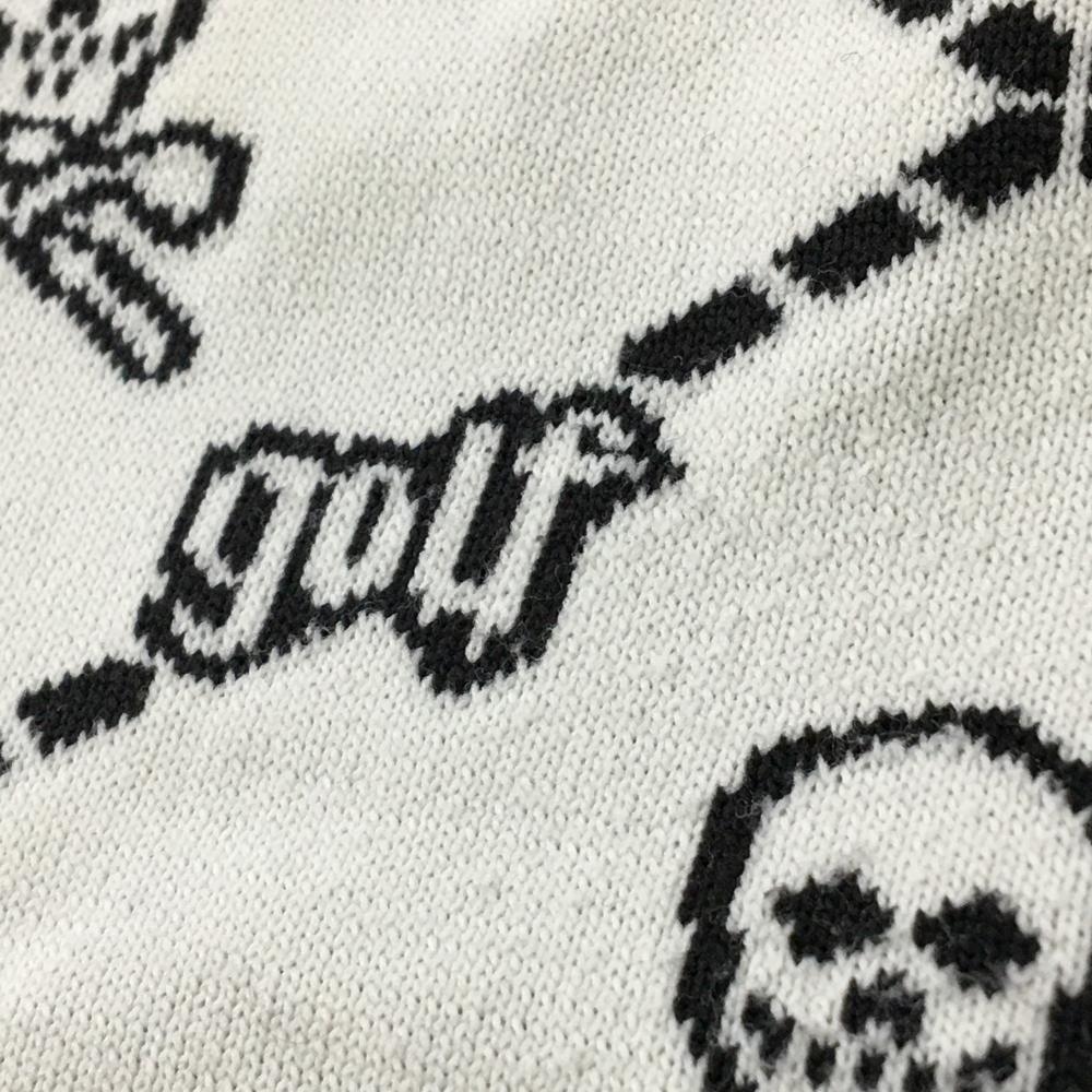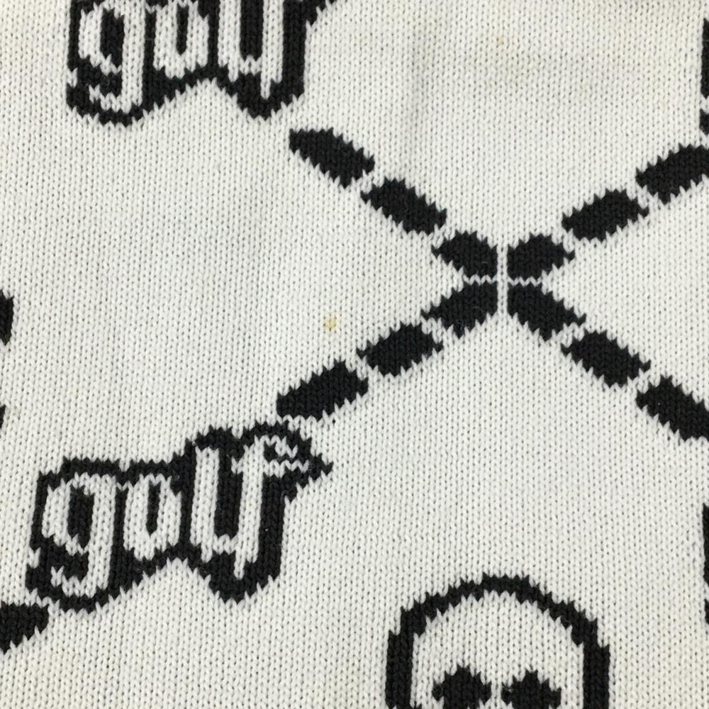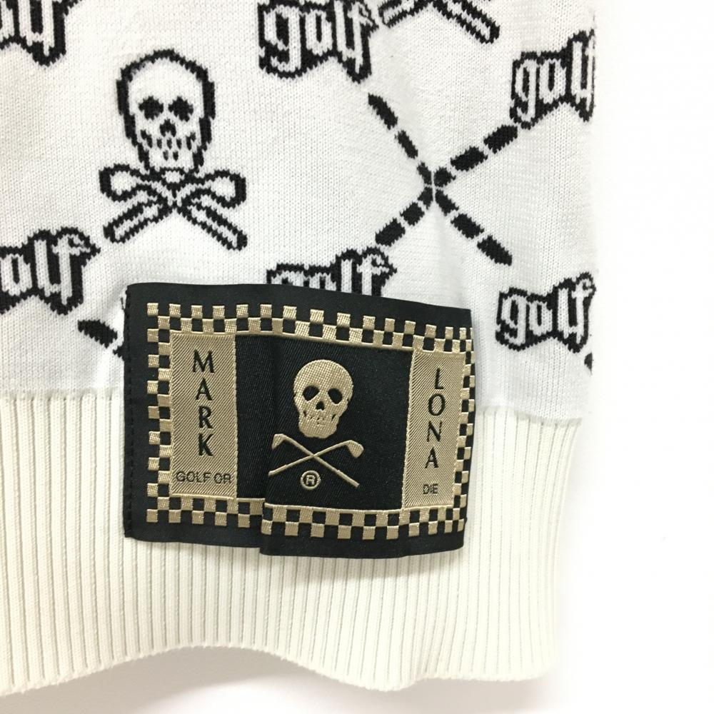 【美品】マークアンドロナ ニットベスト 白×黒 スカル総柄 Vネック メンズ 46(M) ゴルフウェア MARK&LONA