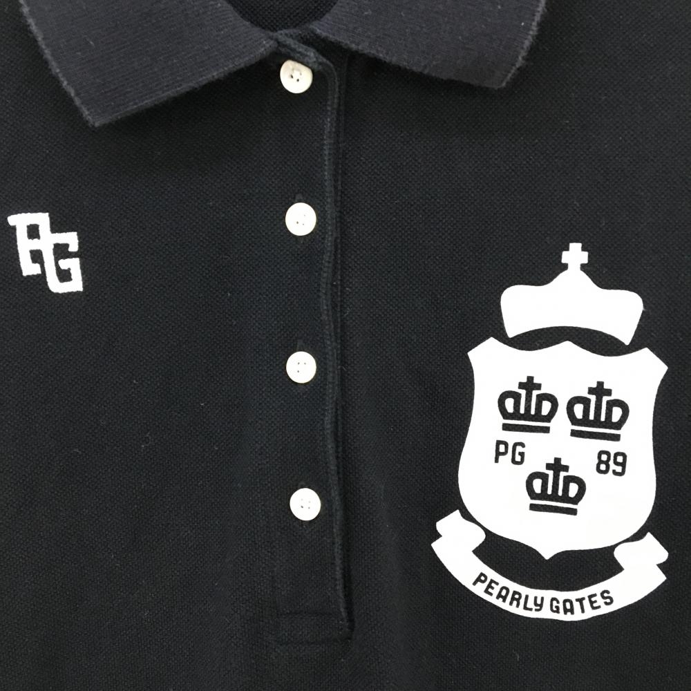 パーリーゲイツ 半袖ポロワンピース 黒×白 袖ナンバリング レディース 1 ゴルフウェア PEARLY GATES