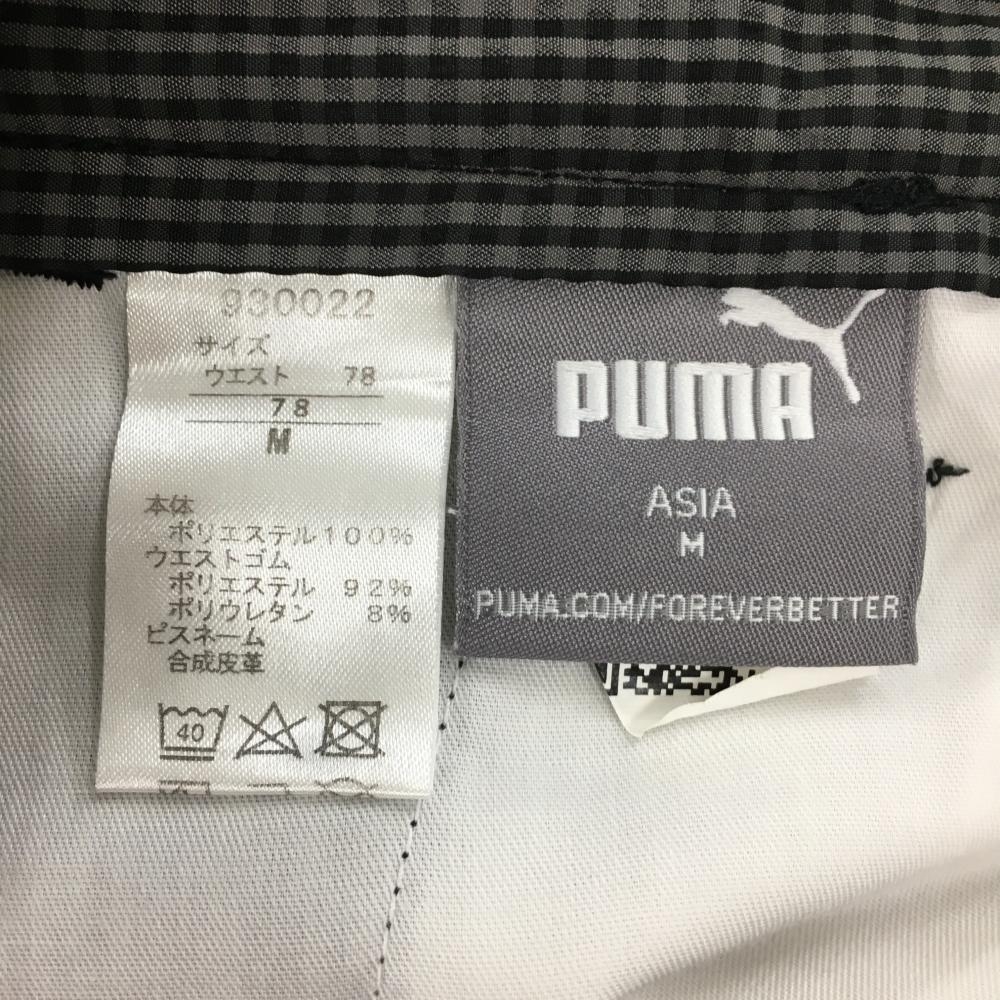 【超美品】プーマ パンツ グレー×黒 チェック ウエスト一部ゴム メンズ M ゴルフウェア PUMA