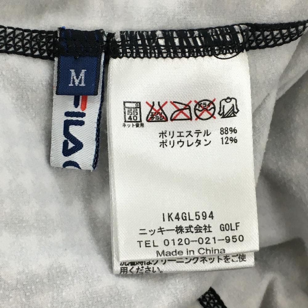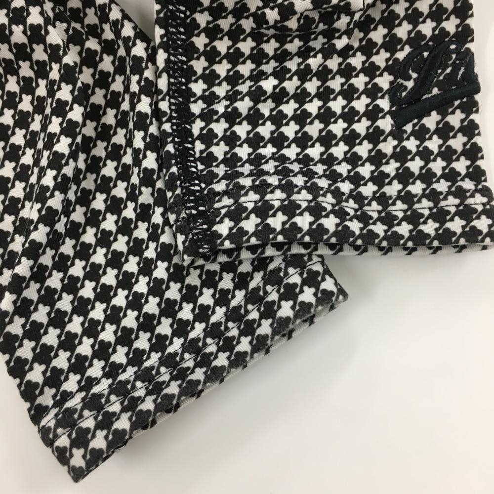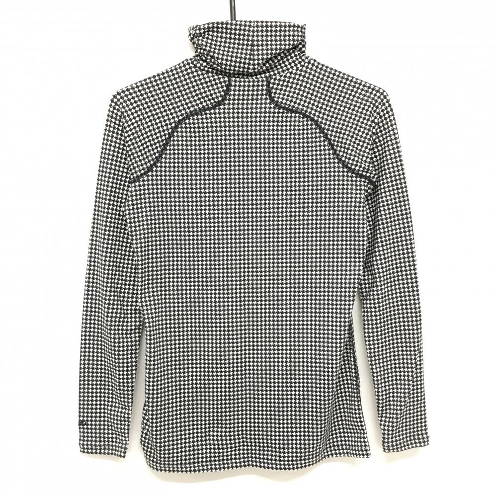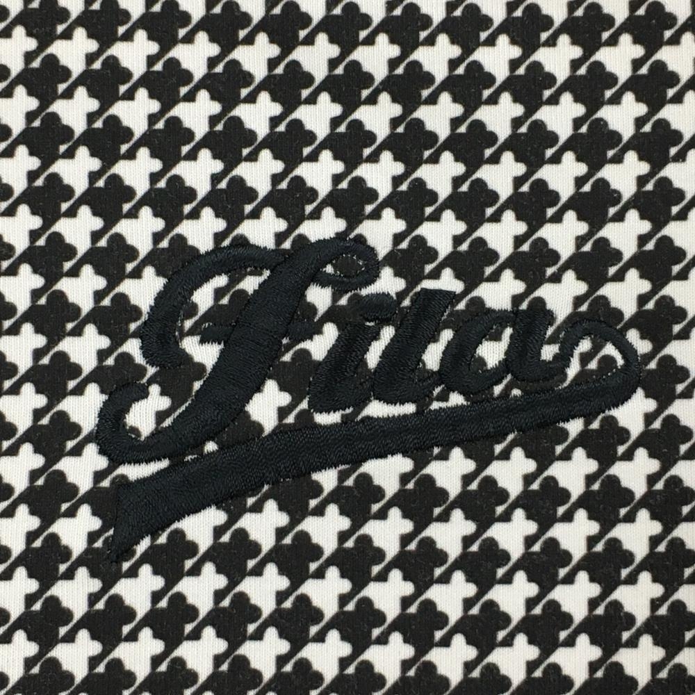 【美品】フィラゴルフ 長袖ハイネックシャツ 黒×白 総柄 ロゴ刺しゅう ストレッチ レディース M ゴルフウェア FILA GOLF